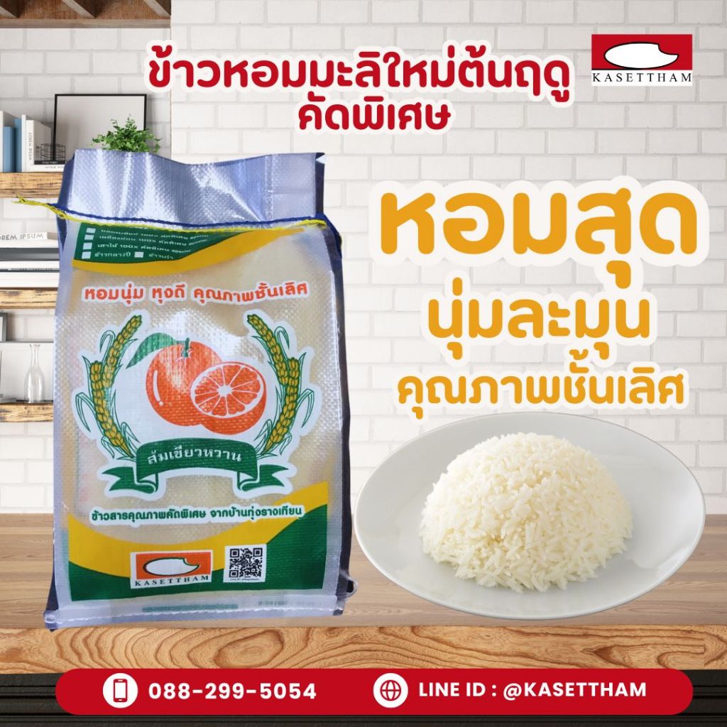 14 กก. ข้าวหอมมะลิใหม่ต้นฤดูปี69คัดพิเศษ100%เม็ดสวยไม่มีหัก ข้าวสารตราส้มเขียวหวาน ราคาโรงสีส่งฟรี สั่ง 2 ถุงคุ้มค่าส่งN