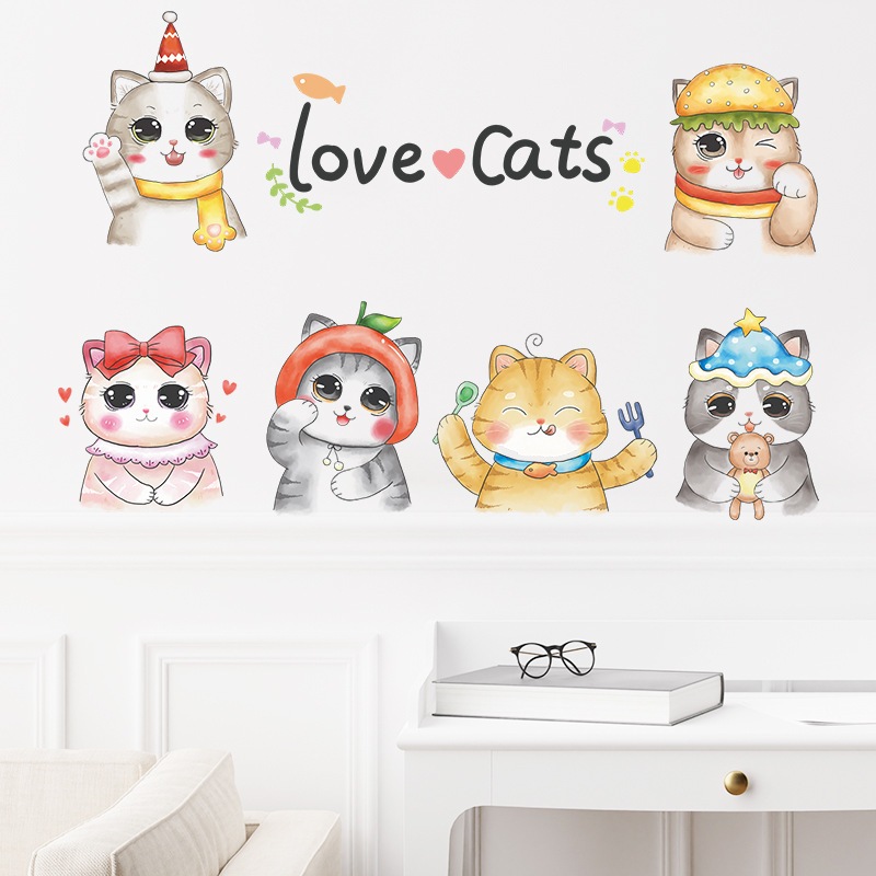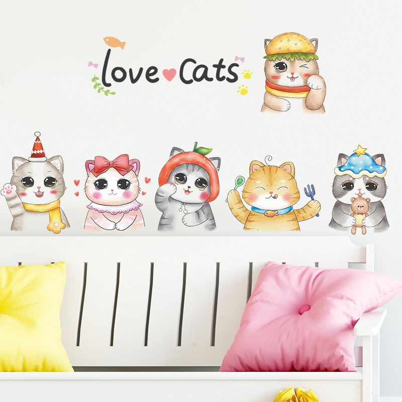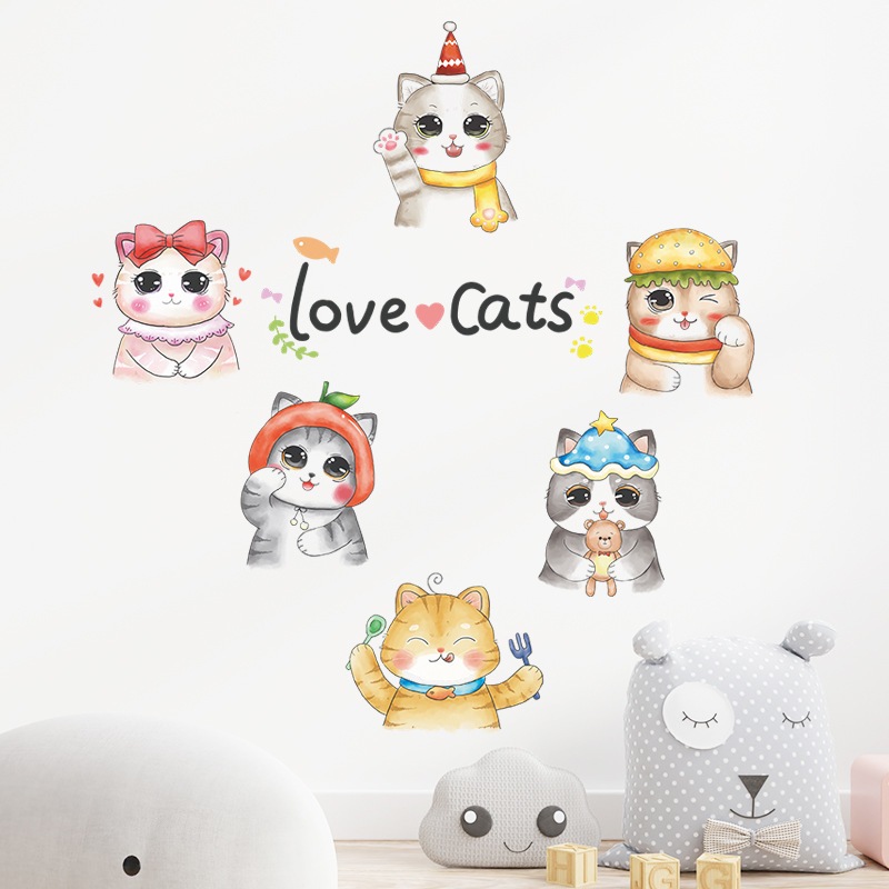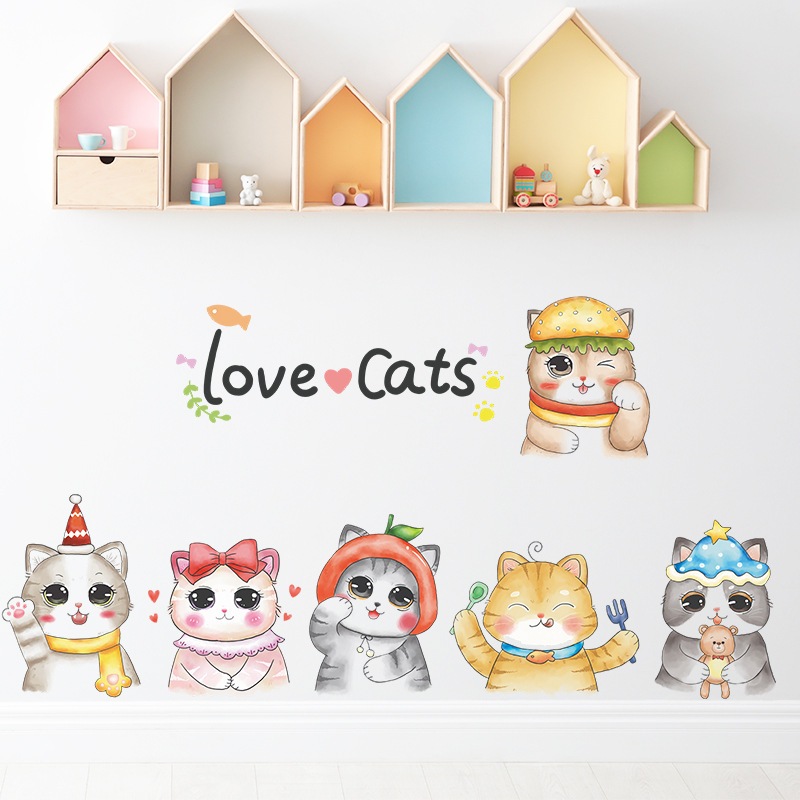 สติ๊กเกอร์ลายแมว ลายสัตว์โลก สําหรับติดตกแต่งผนังห้อง ตกแต่งห้องเด็ก สติกเกอร์ ห้องเรียน LD93115