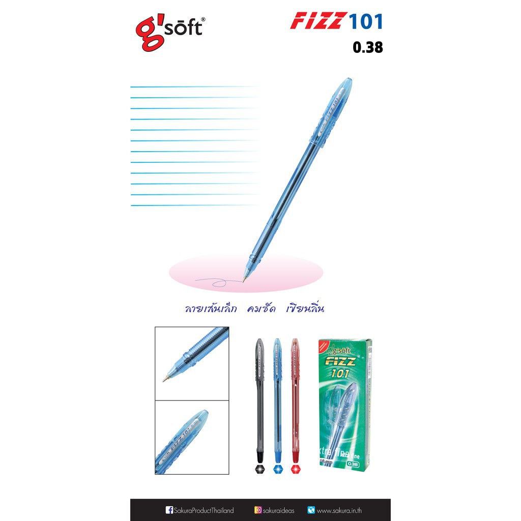 ปากกาลูกลื่น g'soft FIZZ101 ขนาด0.38มม. (จำนวน 1 แท่ง)