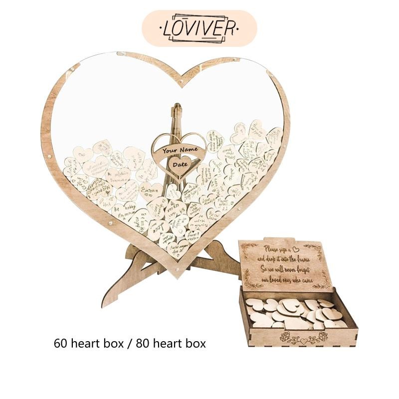 LOVIVER หัวใจไม้3แขกแขกรับเชิญสําหรับตกแต่งงานแต่งงานวันเกิดครบรอบอาบน้ํา