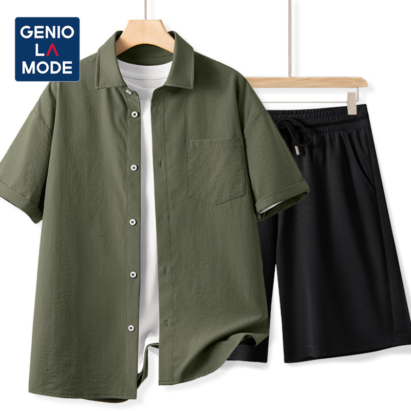 【ชุด】GENIO LAMODE เสื้อเชิ้ตกันแดดผ้าคูลล์ (Coolsense) แบบ Unisex ขนาด M-5XL Ice Silk ใช้ได้ทั้งงานและวันหยุด ยอดนิยมในไทย (ชุดเซตประกอบด้วยเสื้อเชิ้ตและกางเกงขาสั้น)