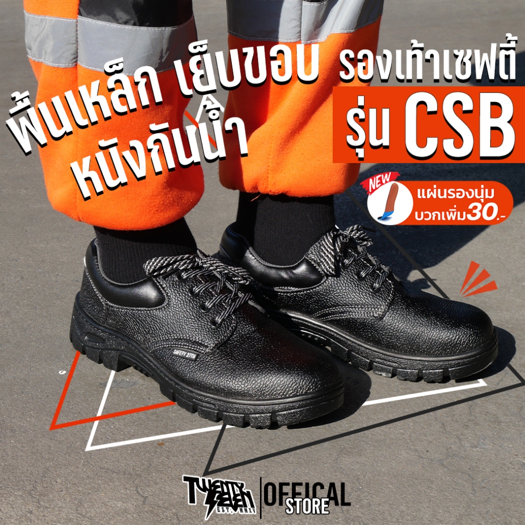 รองเท้าเซฟตี้ หนังกันน้ำ กันสะเก็ดไฟ หัวเหล็ก พื้นเหล็ก เย็บขอบรอบ ไซส์ 35-47 (รุ่น CSB)