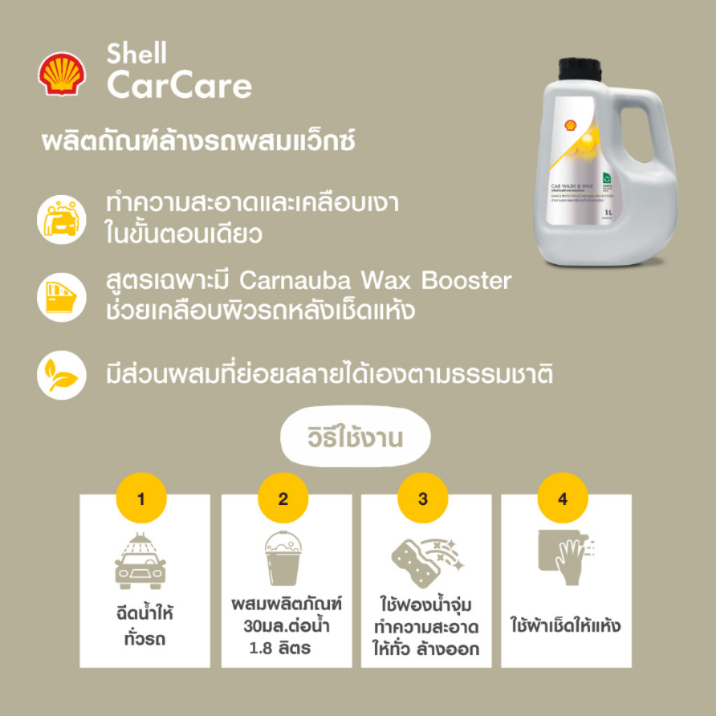 [ใหม่] SHELL แชมพูล้างรถผสมแว็กซ์ Car Wash & Wax (1 ลิตร)