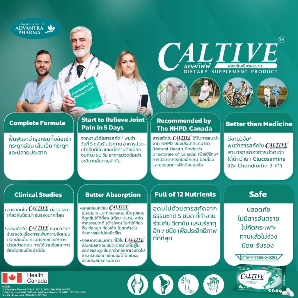 (ส่งฟรี)CALTIVE by ADVANTRA PHARMA แคลทีฟฟ์ อาหารเสริมบำรุงเข่าข้อ กระดูก เส้นเอ็น ปลายประสาท (4in1)