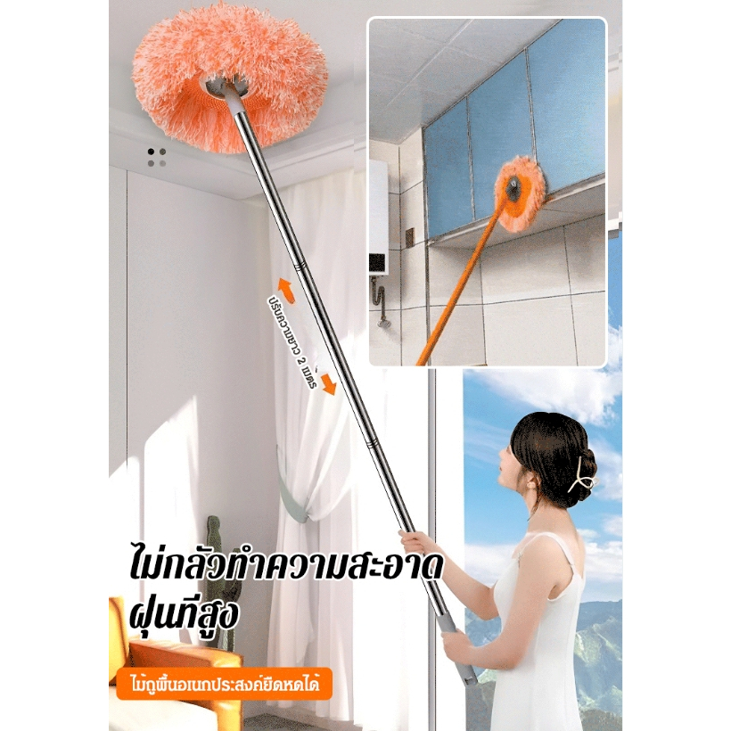 ไม้ม็อบด้ามจับยาว 360° ไม้ถูพื้น ทําความสะอาดเพดาน พร้อมผ้าม็อบ สามารถหมุน และ ปรับขนาดได้