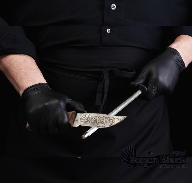 (New)ถุงมือไนไตร เกรดA+ยี่ห้อ [Super Black] สีดำ บรรจุ 50 ชิ้น/กล่อง