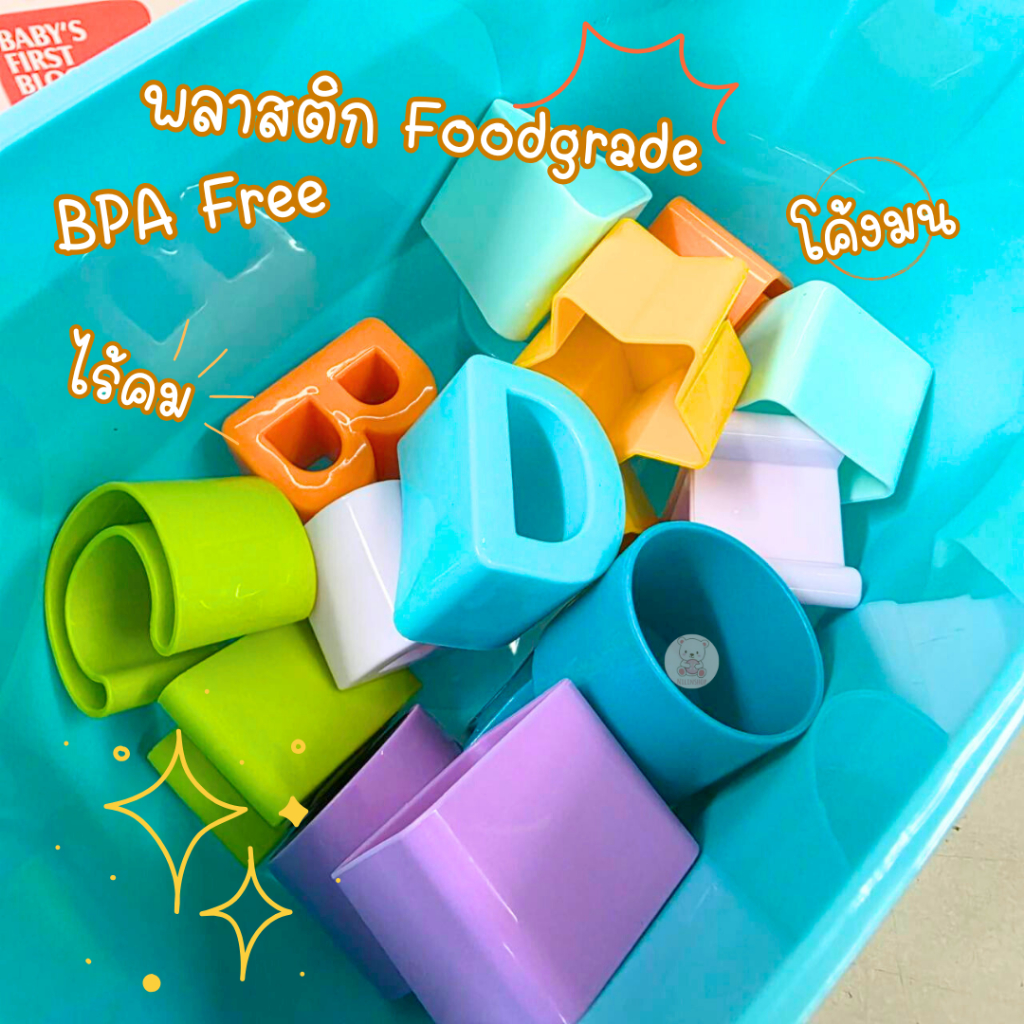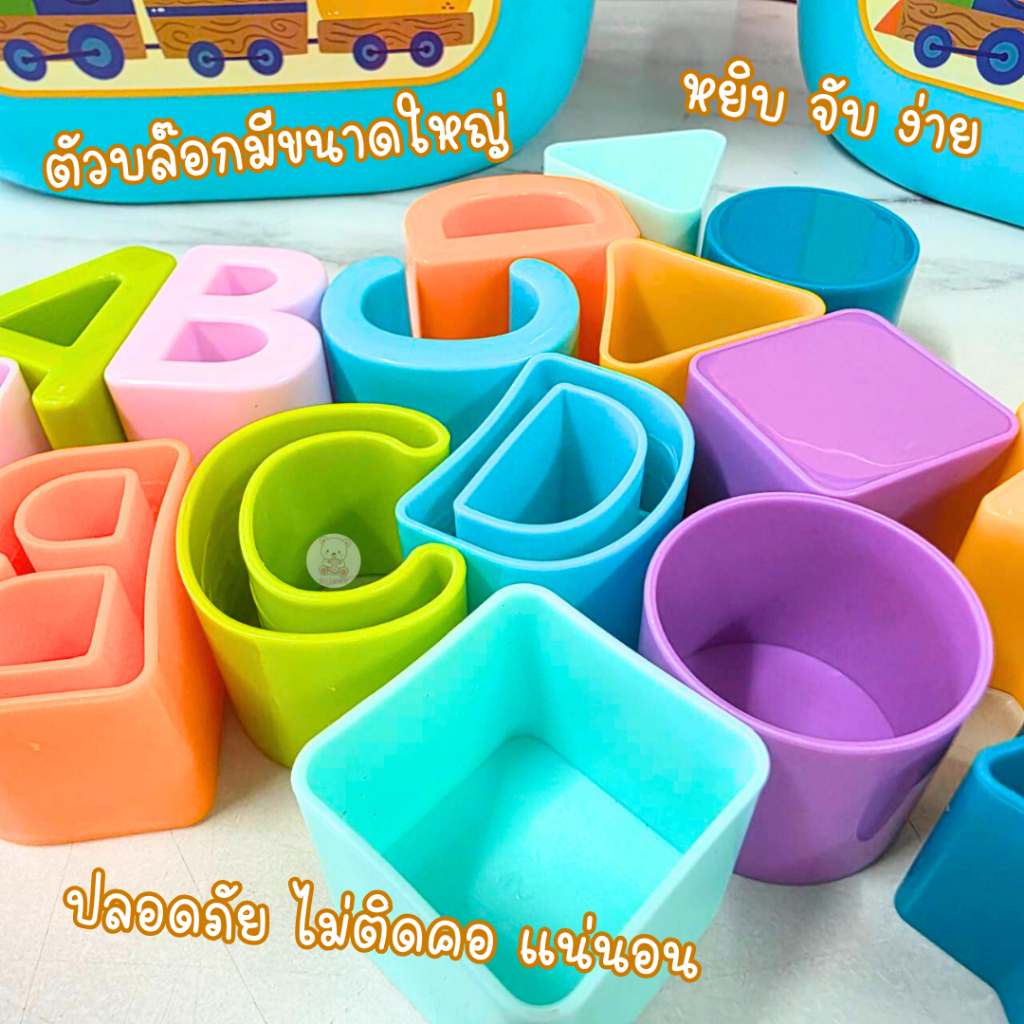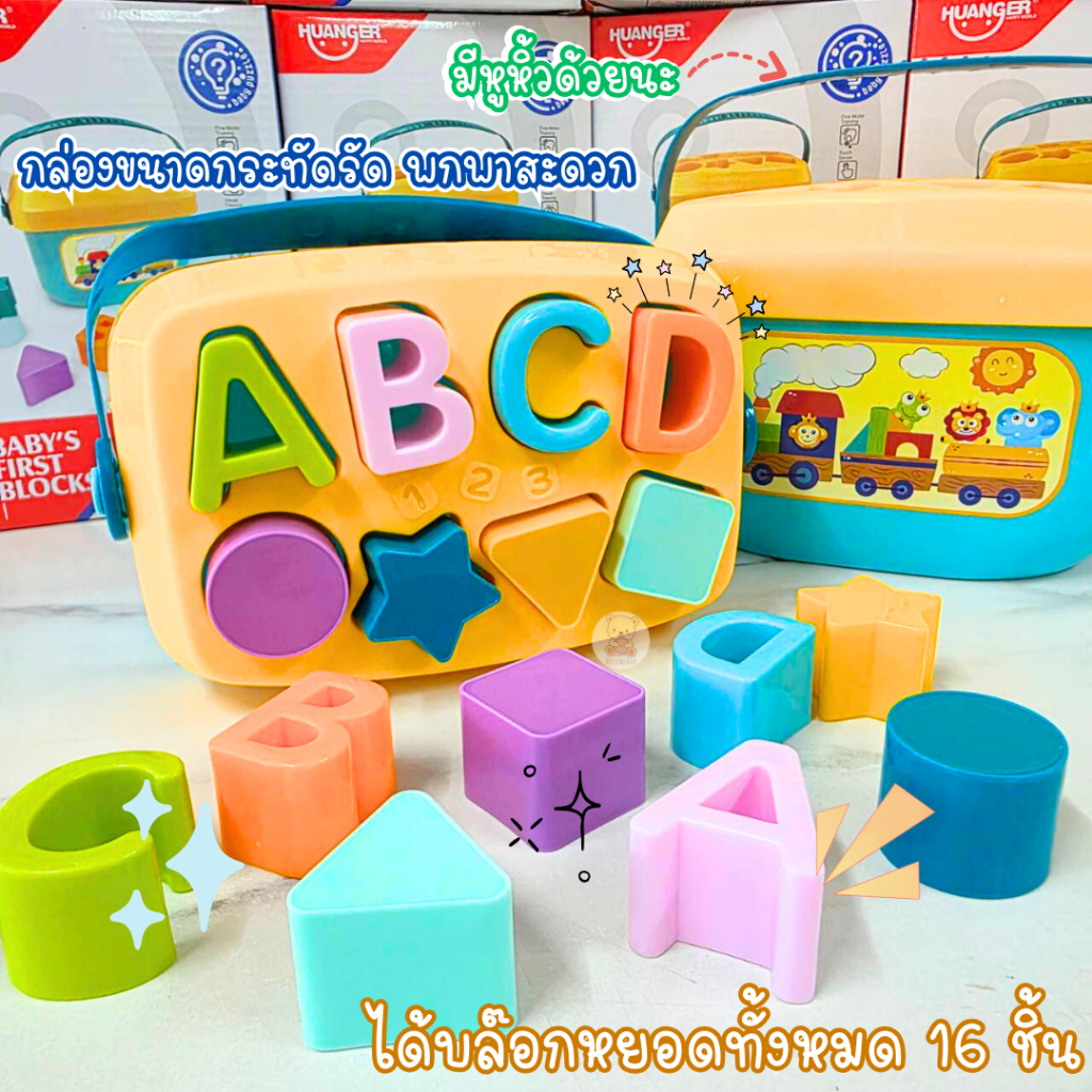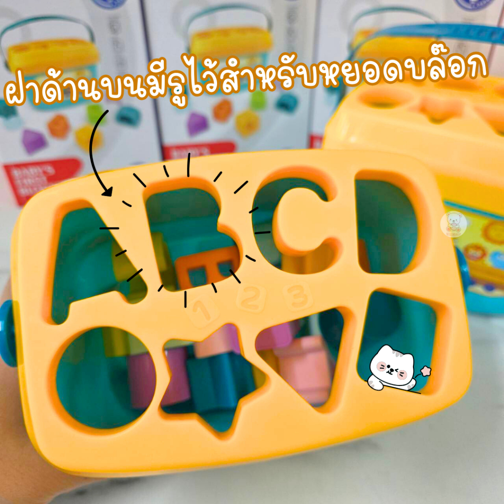 บล็อกหยอด Baby’s First Blocks ถังหยอดรูปทรงเรขาคณิตต่างๆ และ ตัวอักษร ABCD ตัวถังมีหูหิ้ว พกพาสะดวกก