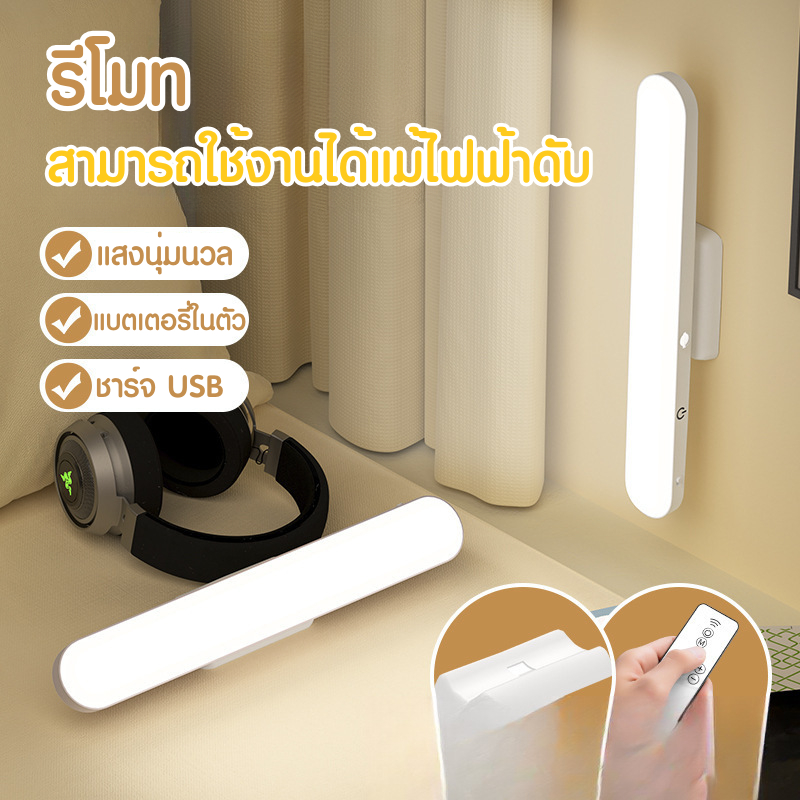โคมไฟLED ไฟกลางคืน สำหรับตู้เสื้อผ้า ยึดด้วยแม่เหล็ก ไม่ต้องเจาะ โต๊ะทำงาน USB การปรับรีโมทคอนโทรล