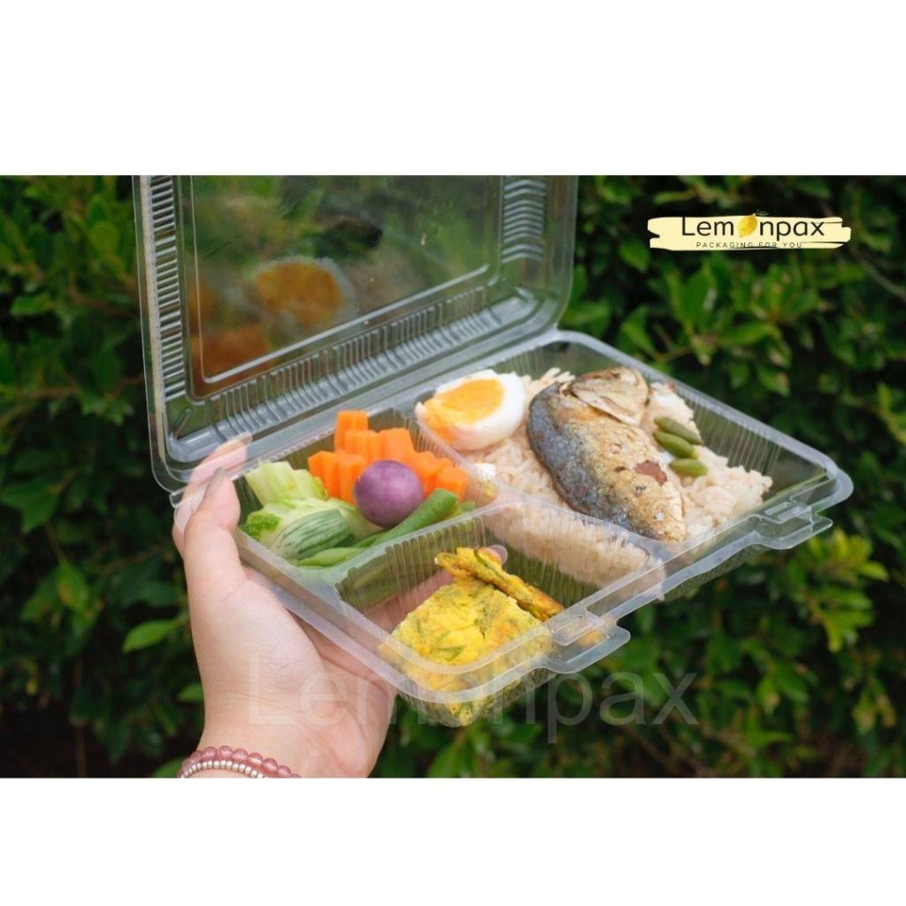 กล่องใส OPS รหัส 105L (ล็อคในตัว) กล่องใส่อาหาร 3 ช่อง ไม่เป็นไอน้ำ บรรจุ 50 ชิ้น/แพ็ค