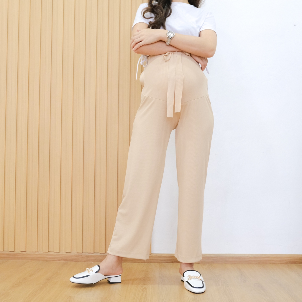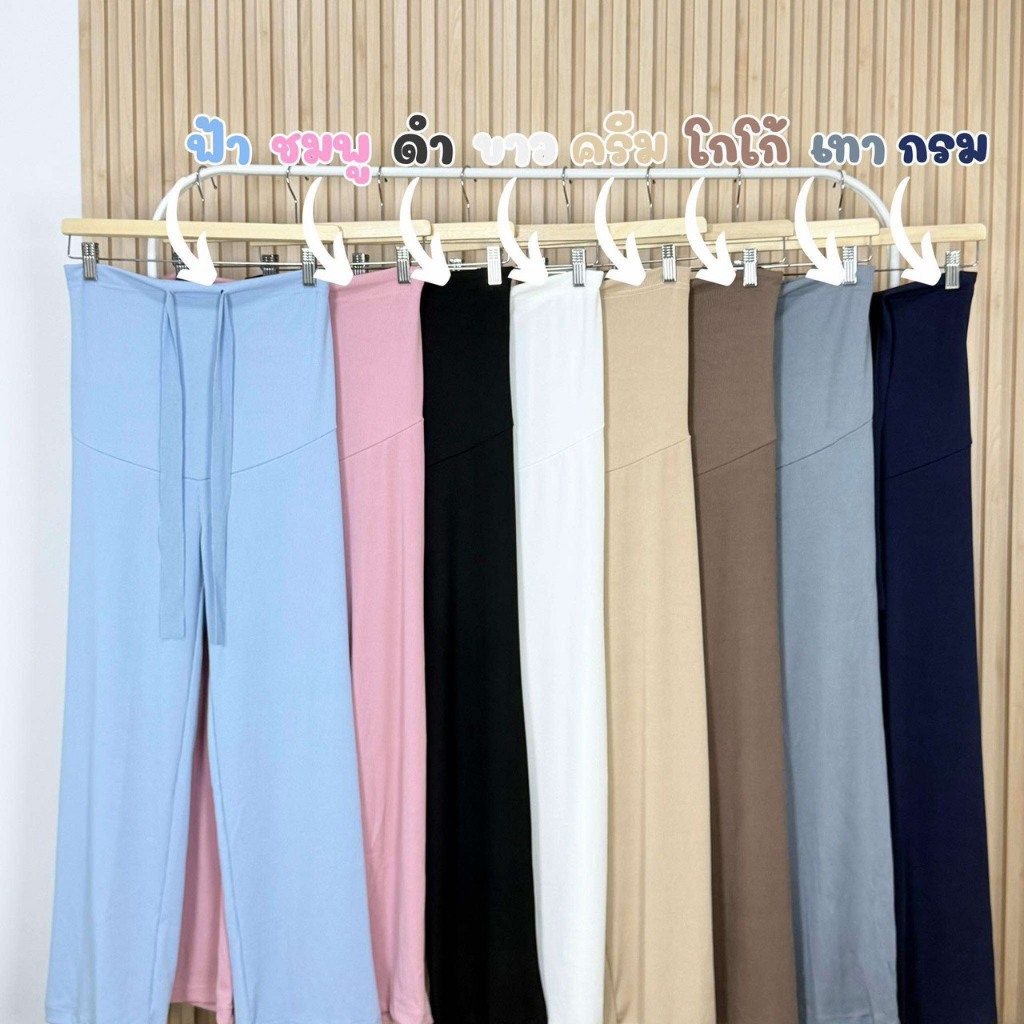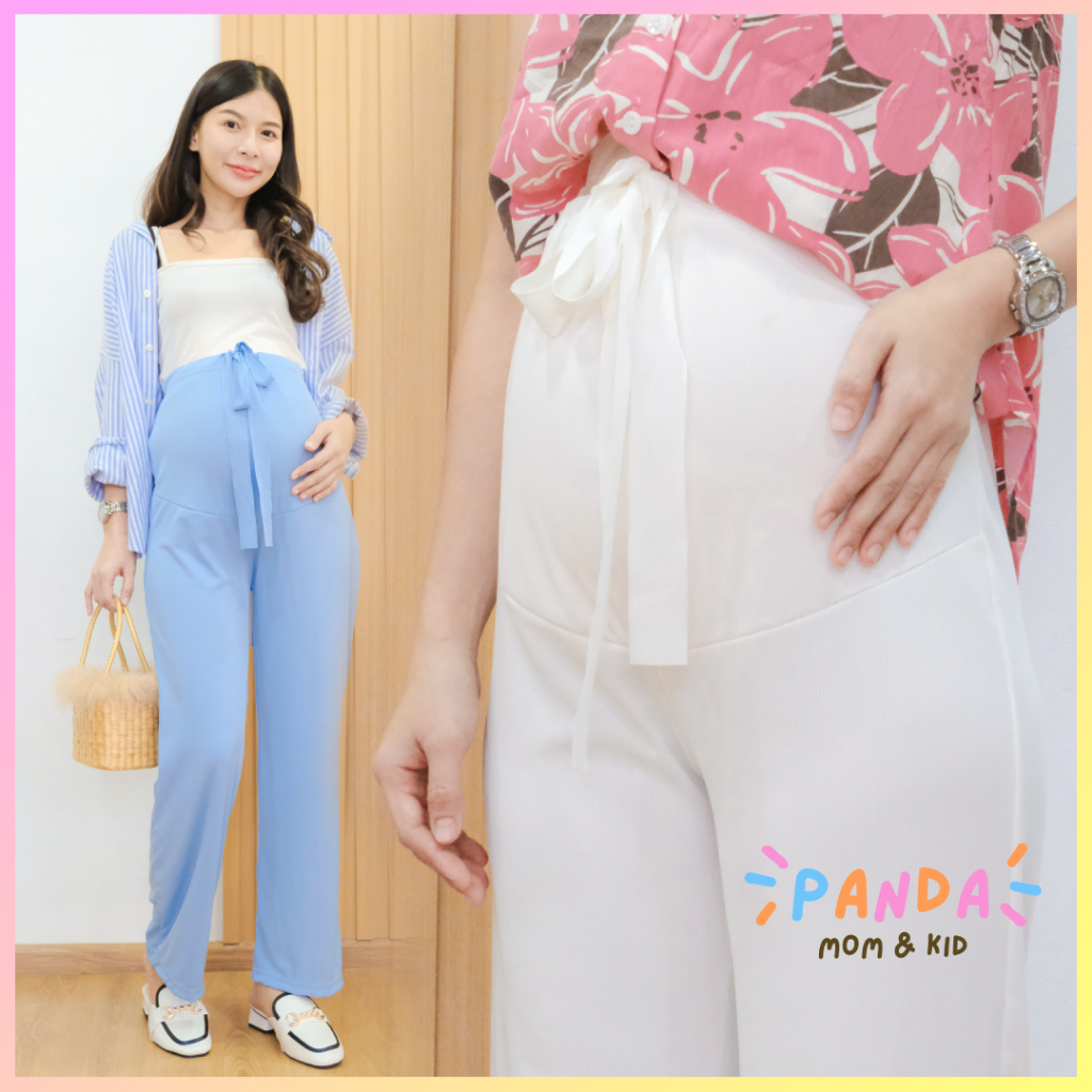 PANDA กางเกงคนท้องขายาว มีเชื่อกผูกเอว สำหรับคุณแม่ตั้งครรภ์ ผ้าร่อง ยืดได้เยอะ ใส่สบาย
