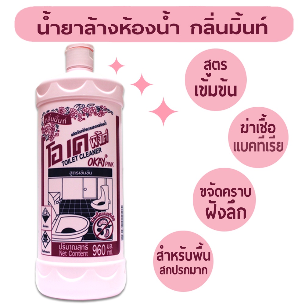 OKAY น้ำยาล้างห้องน้ำ 960 มล ขจัดคราบดำยาแนว คราบรา ToiPink ฆ่าเชื้อโรค ขจัดคราบสนิม ขจัดคราบฝังลึก