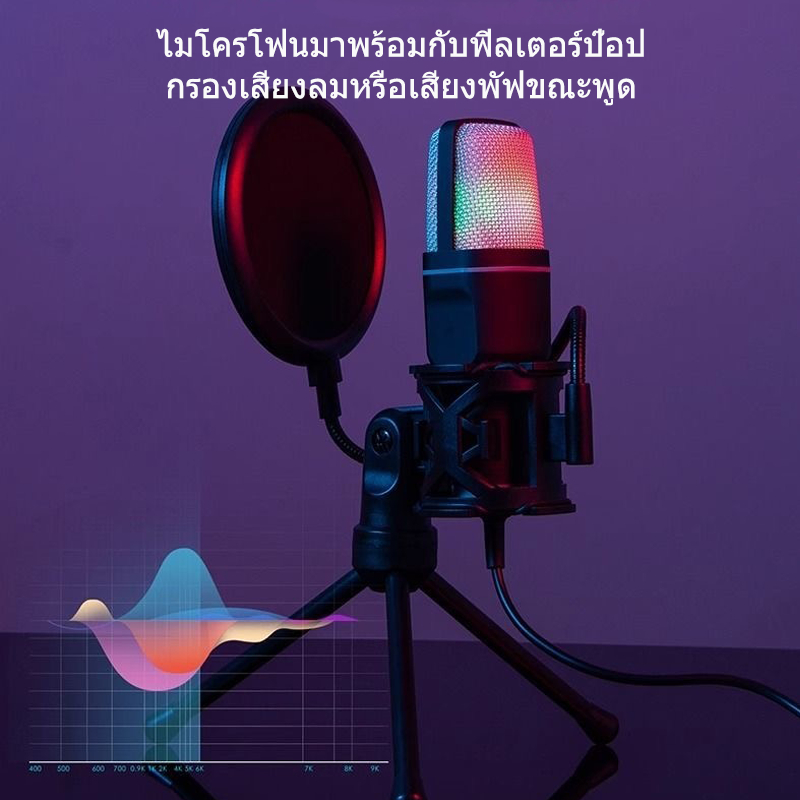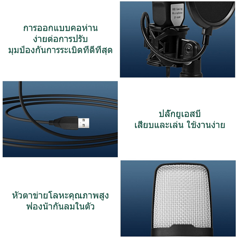 SF-666R ไมโครโฟนคอมพิวเตอร์โทรศัพท์มือถือ ไมโครโฟนสำหรับเล่นเกมคอนเดนเซอร์ RGB โปร่งใส ไมโครโฟนสำหรับการประชุมทางวิดีโอ