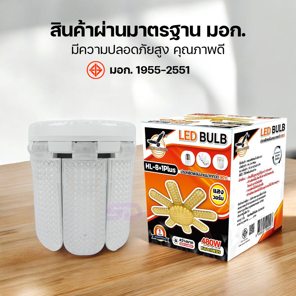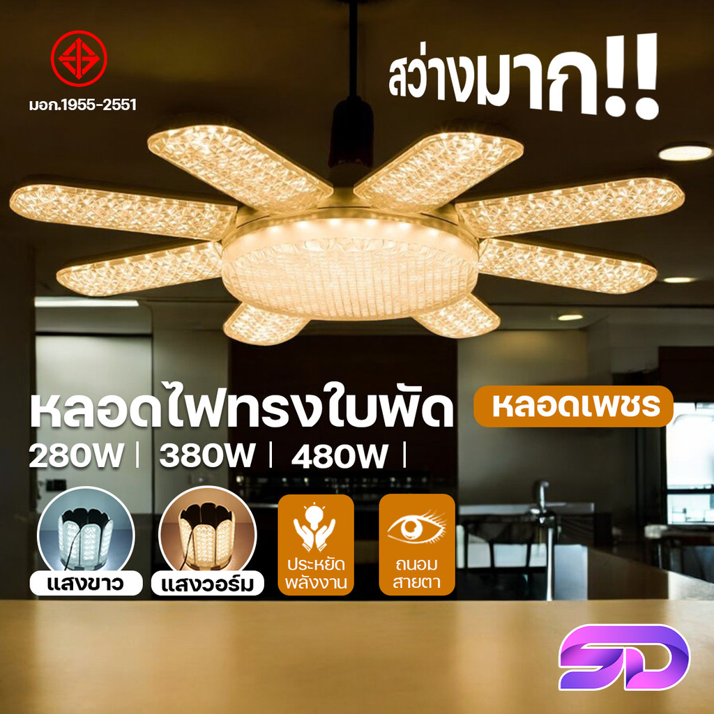 HLX หลอดไฟเพชร พับเก็บได้ 480W/380W/280W สว่างมาก ประหยัดไฟ หลอดไฟพับ หลอดไฟใบพัด LED BULB มอก. แท้