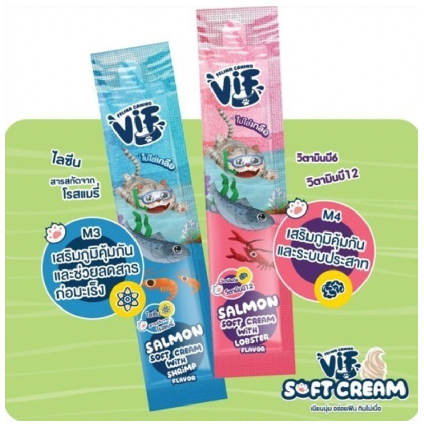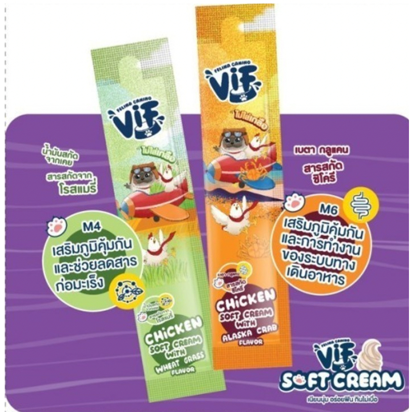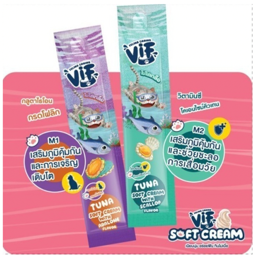 Vif Soft Cream ขนมแมวเลีย ผลิตจากวัตถุดิบธรรมชาติ ไม่ใส่เกลือ เนื้อเนียนนุ่ม แบบซอง 15g*5 ซอง