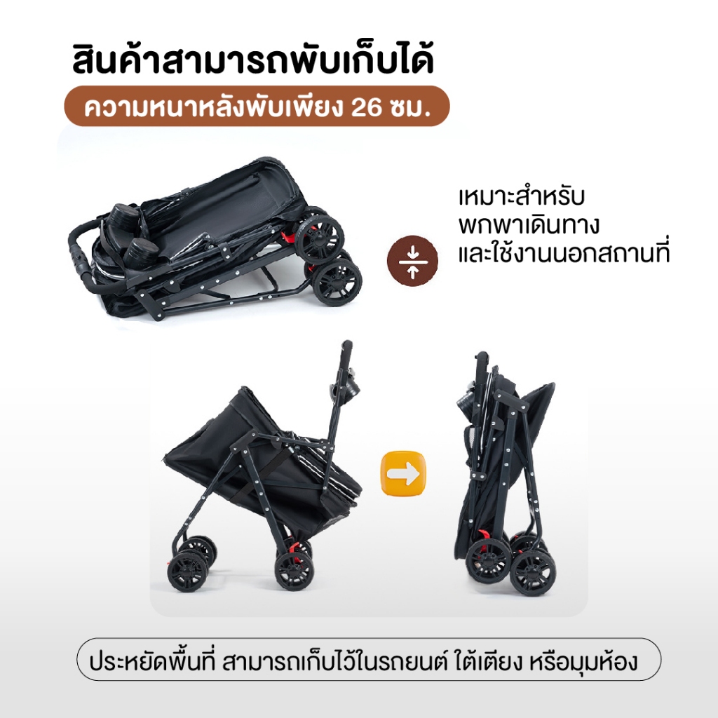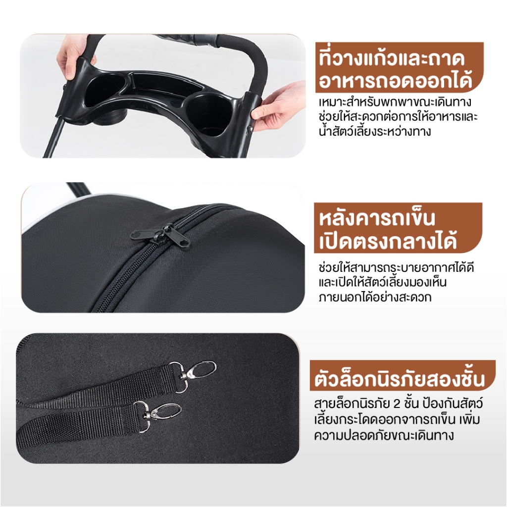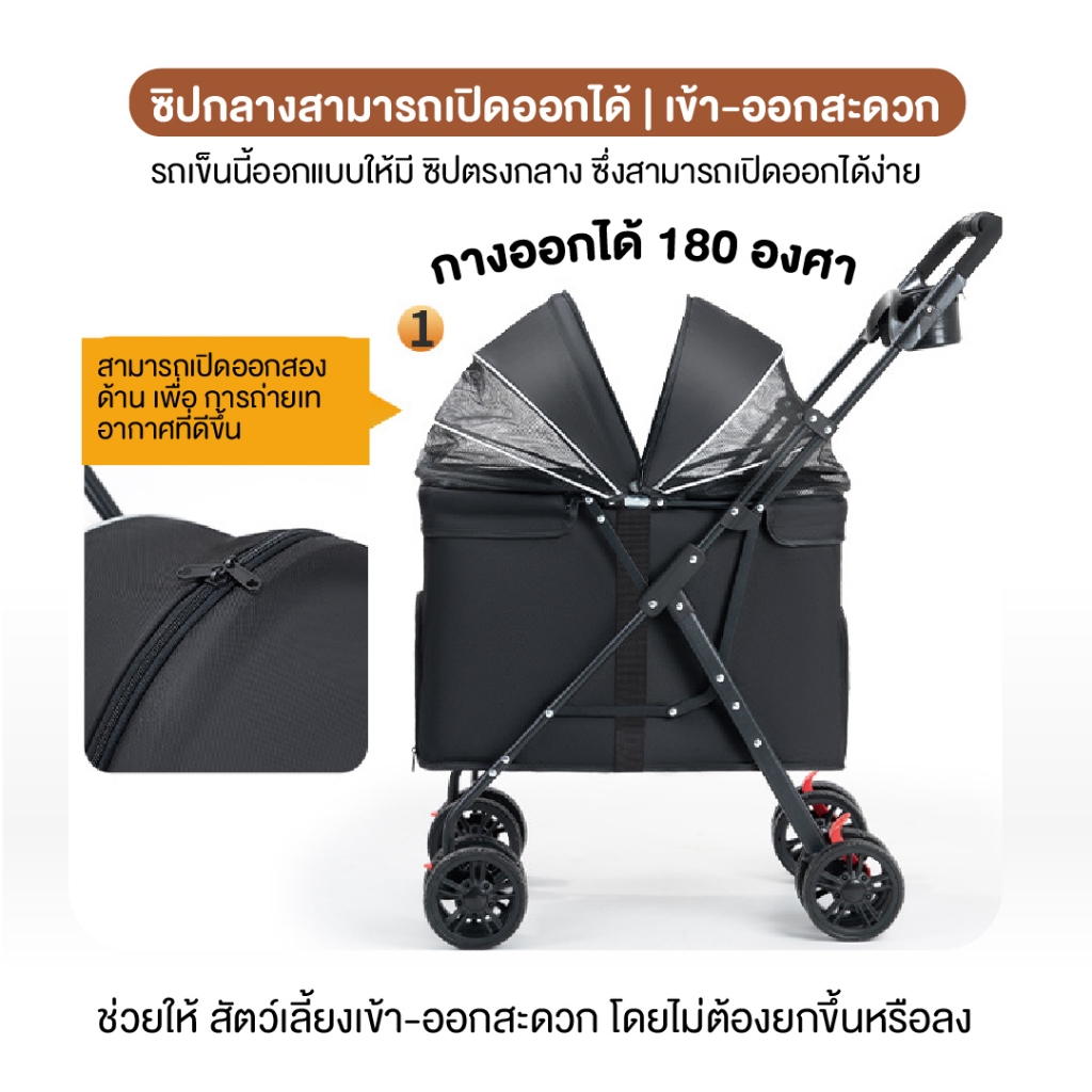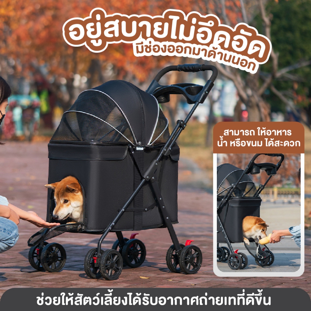 [Bratvee] รถเข็นสัตว์เลี้ยง รถเข็นหมา รถเข็นแมว ดีไซน์โดมทรงสูง รับน้ำหนักได้ 30Kg