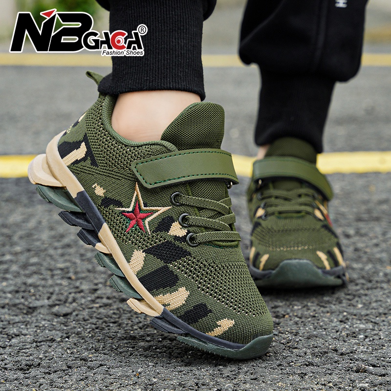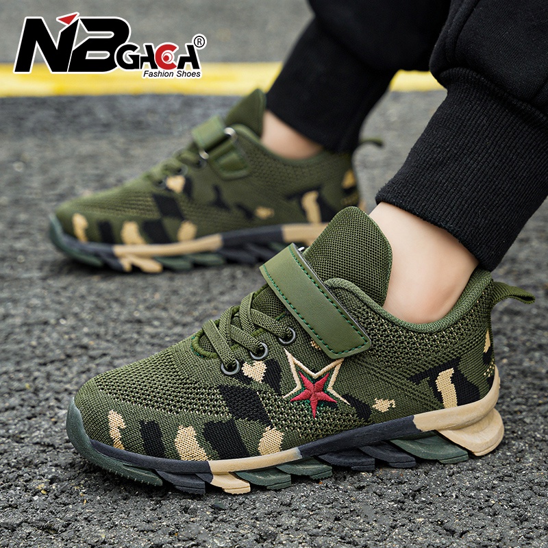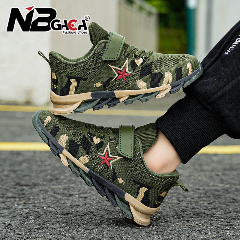 รองเท้าผ้าใบลําลอง กันลื่น ลายพราง สีเขียวทหาร เหมาะกับการเล่นกีฬากลางแจ้ง สําหรับเด็กผู้ชาย อายุ 5-15 ปี