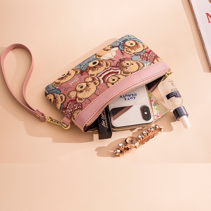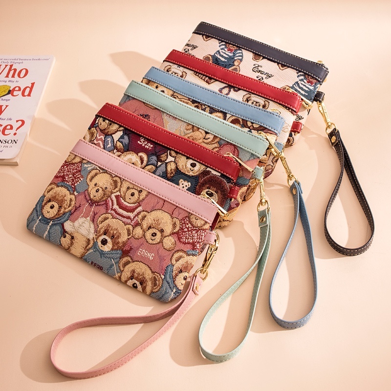 Seagloca กระเป๋าถือ กระเป๋าสตางค์ ปักลายหมีน้อย คุณภาพดี สําหรับใส่โทรศัพท์มือถือ NO.661
