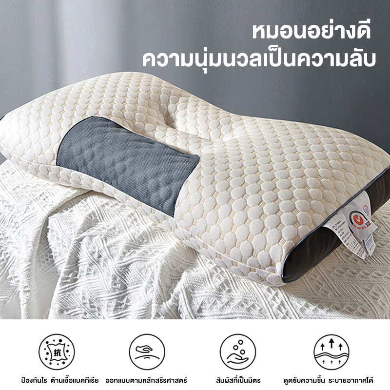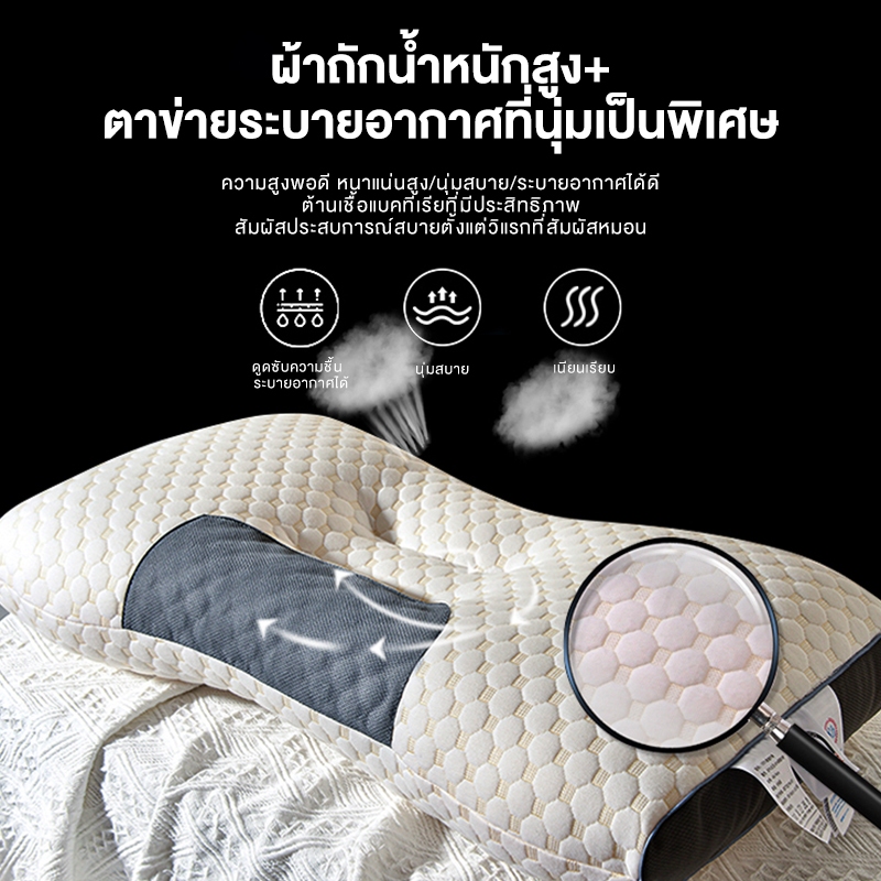 ILUOLAI หมอน หมอนสุขภาพ แก้ปวดคอ บ่า ไหล่ หมอนยางพารา นอนหลับสบาย สัมผัสนุ่ม 3D ลดการนอนกรน ป้องกันไรฝุ่น รองรับน้ําหนักได้เป็นอย่างดี Pillow