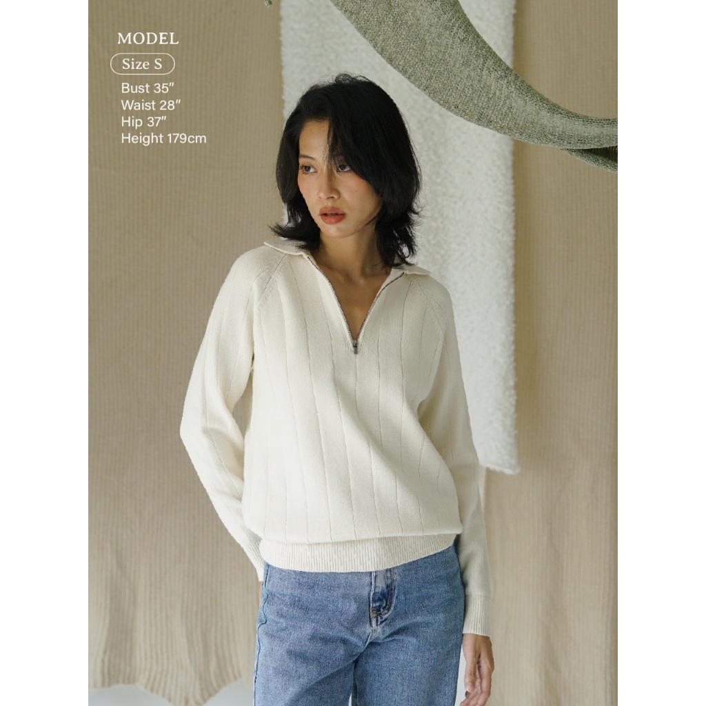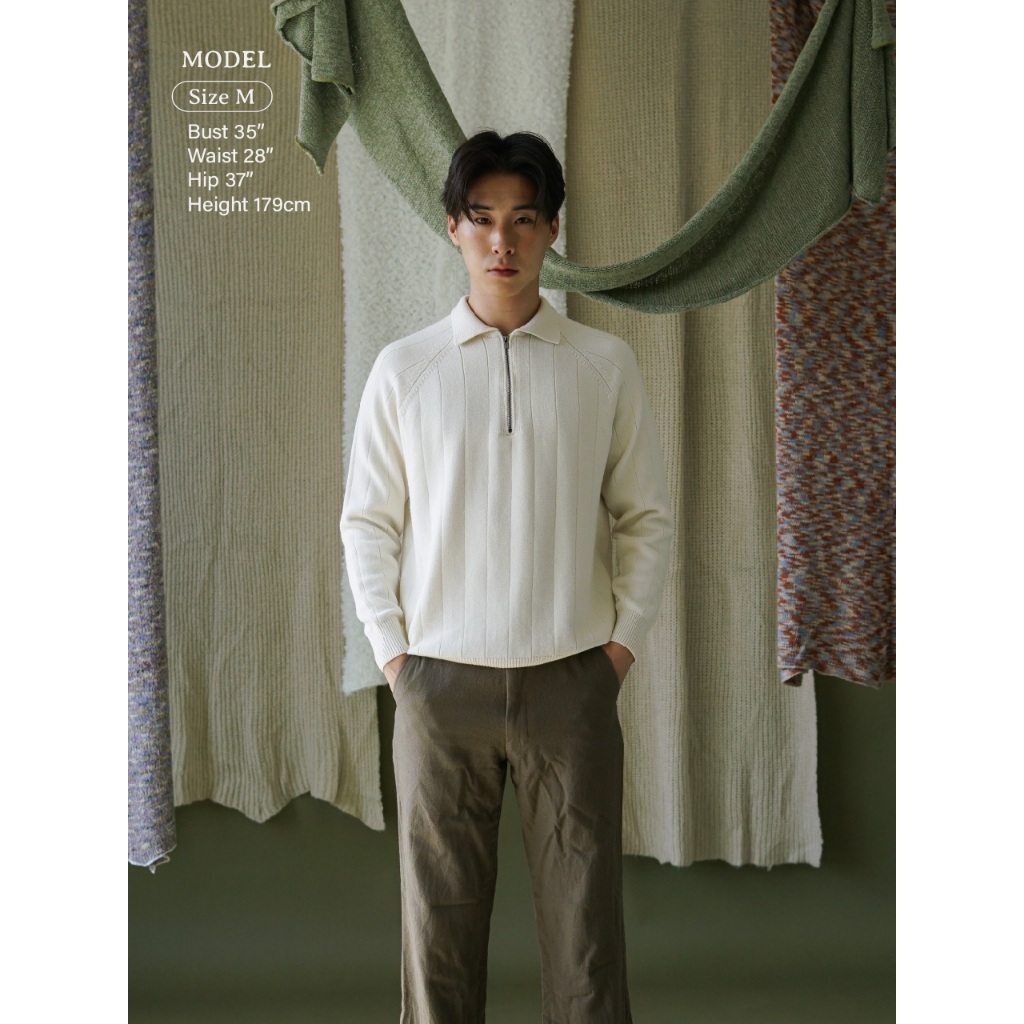 knitCircle - TIMOTHEE Long sleeve Knit zipper Polo (2 สี) Men's collection เสื้อโปโลไหมพรมแขนยาว ซิปคอ ทรงพอดีตัว
