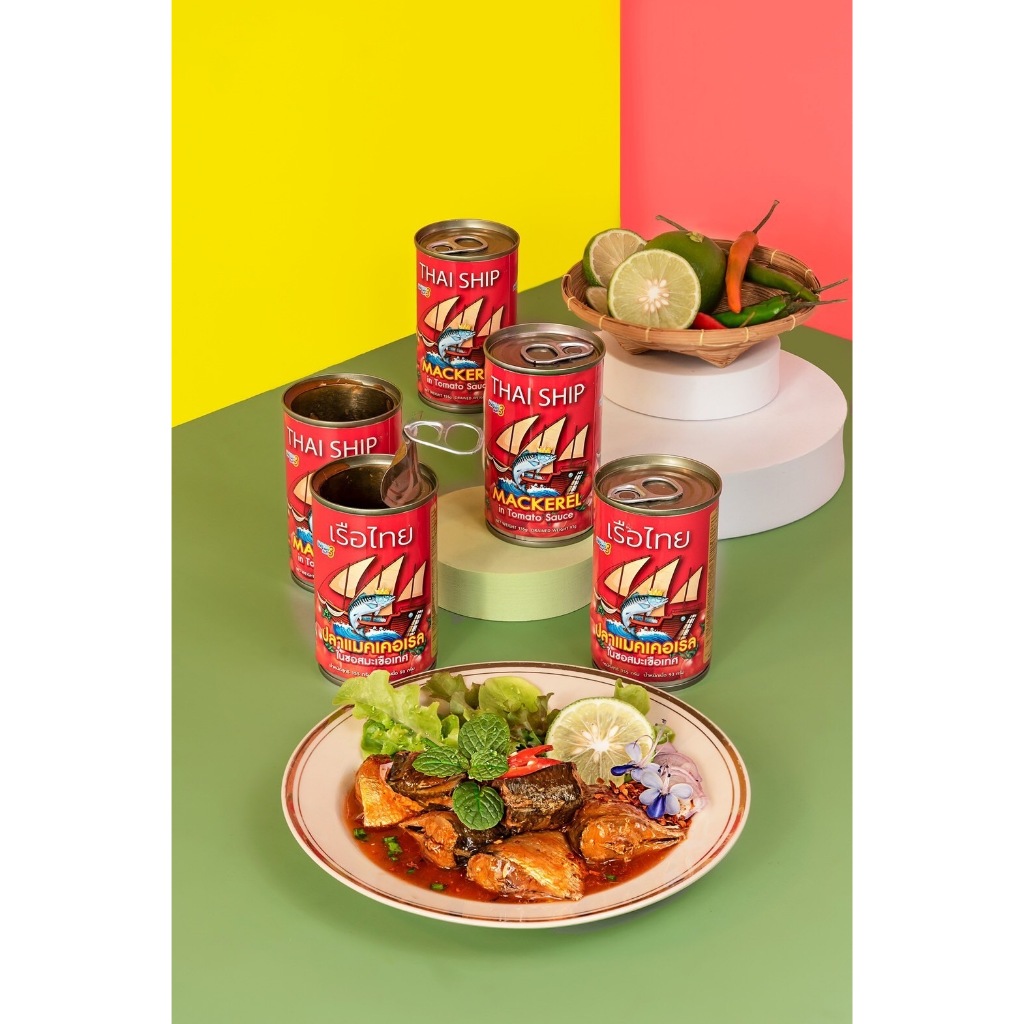 10 กระป๋อง - ตราเรือไทย สูตรปลาแมคเคอเรลในซอสมะเขือเทศ