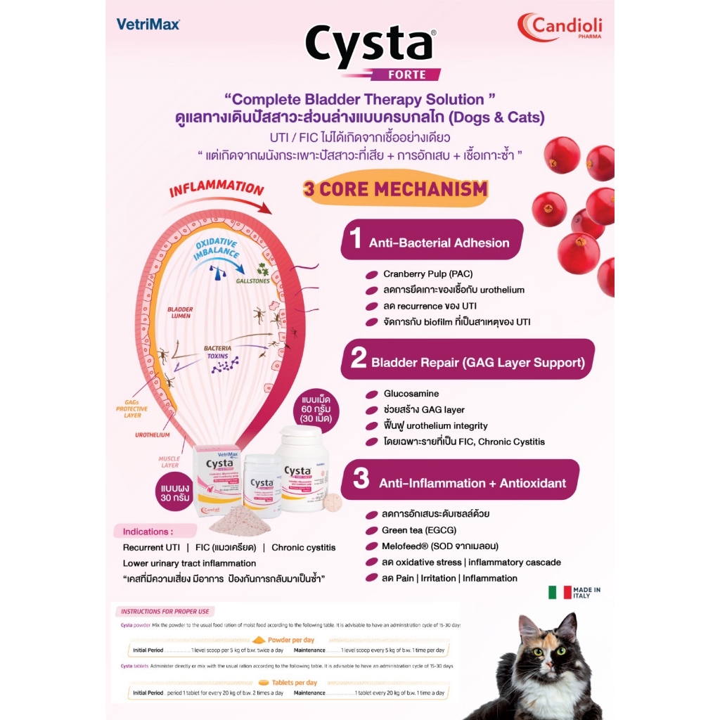 Candioli: Cysta Forte [แท้💯] อาหารเสริมดูแลดูแลทางเดินปัสสาวะ สำหรับสุนัขและแมว 🇮🇹 (Cystaid Plus)