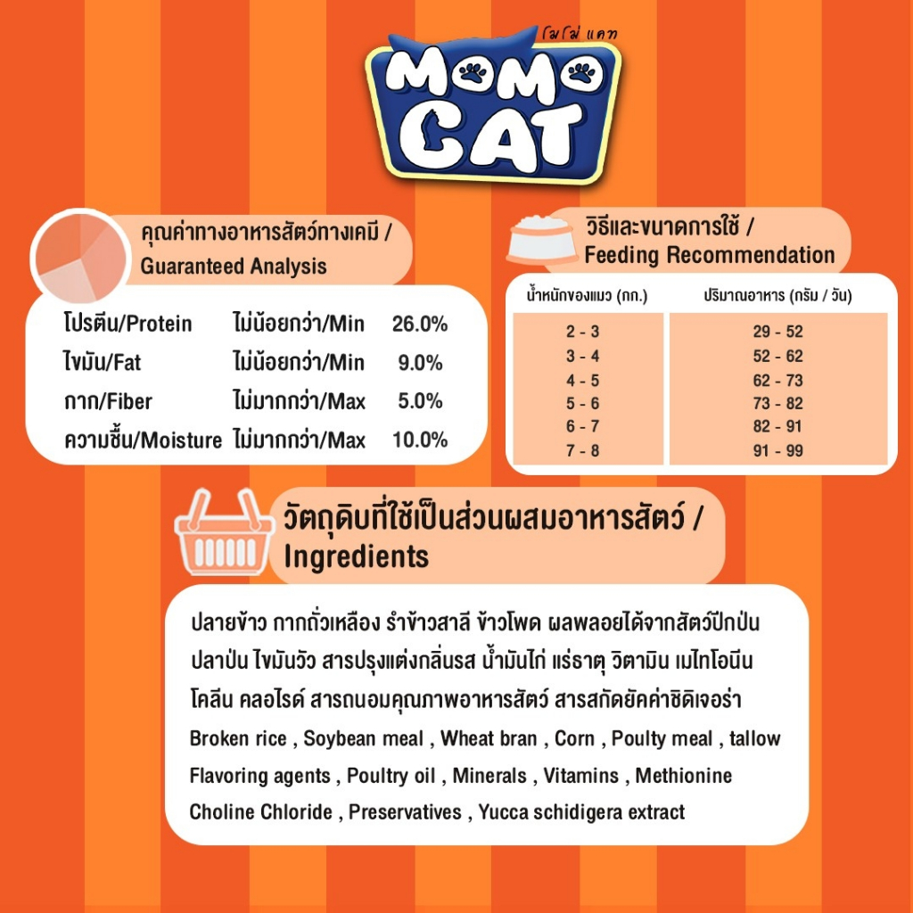 Momo Cat โมโม่ แคท อาหารเม็ด สำหรับแมว ขนาด 7 กก. 14 กก. 20 กก. ถุงแยก 1x14 กก. และ 1X20 กก.