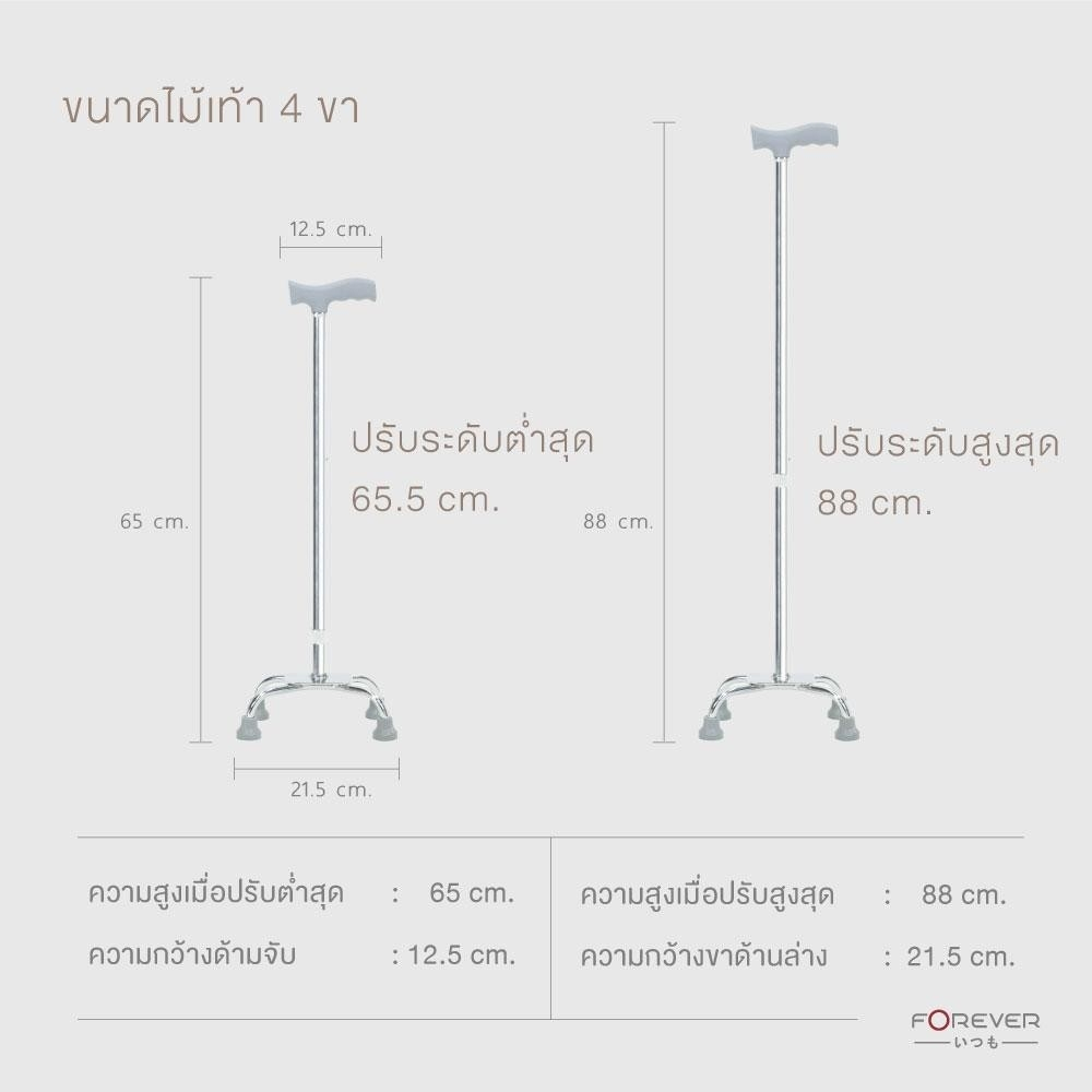 Forever ไม้เท้าช่วยพยุง 4 ขา และไม้เท้าขาเดียว ปรับสูงต่ำได้ ไม้เท้าหัดเดิน ไม้เท้าช่วยกายภาพ