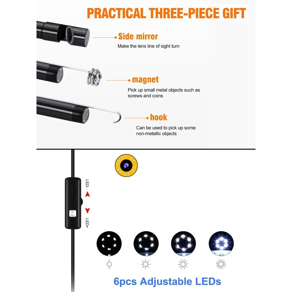 กล้องเอนโดสโคป 3.5 ม. กล้องงูกันน้ํา เชื่อมต่อกับคอมพิวเตอร์ โทรศัพท์มือถือ กล้องท่อ 3 ใน 1 กล้องเอนโดสโคป USB / TYPE-C / Micro-USB