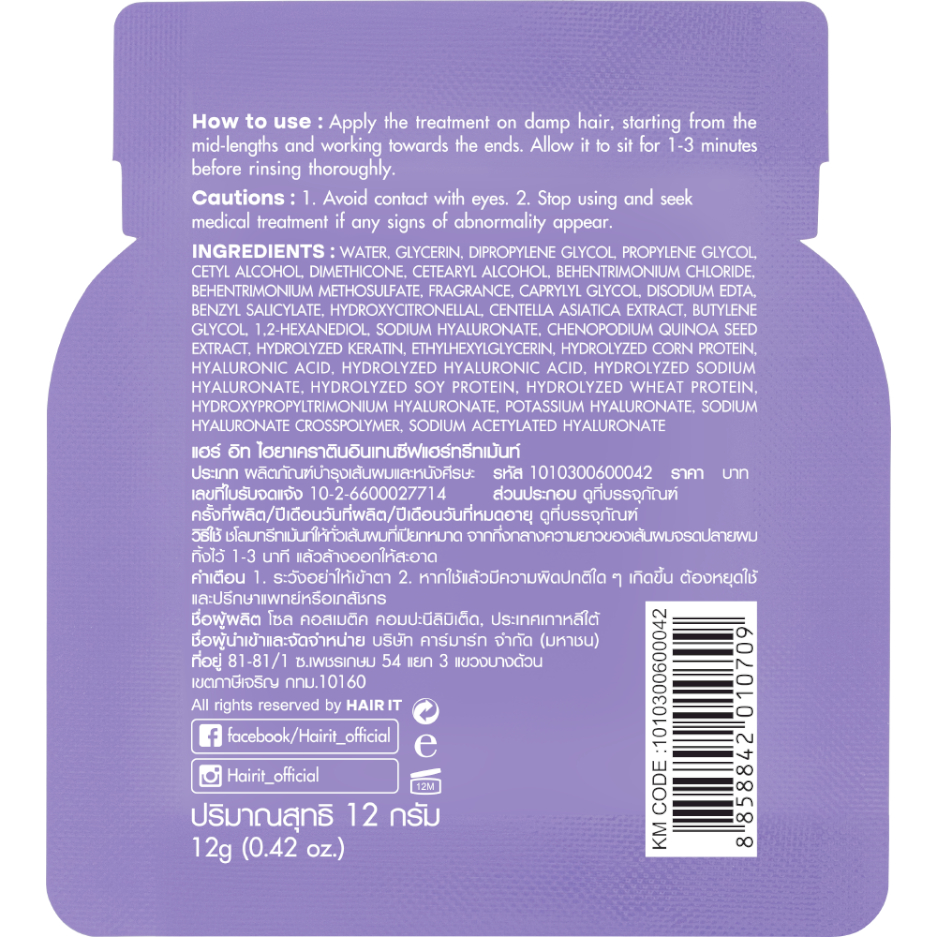HAIR IT ไฮยาเคราตินอินเทนซีฟแฮร์ทรีทเม้นท์ 12g แฮร์อิท