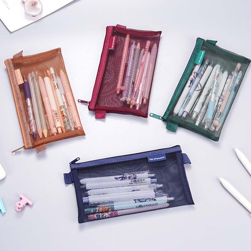 กระเป๋าดินสอใสชั้นเดียวซิปกรณีดินสอเครื่องเขียนถุงเก็บ