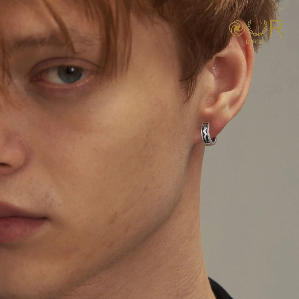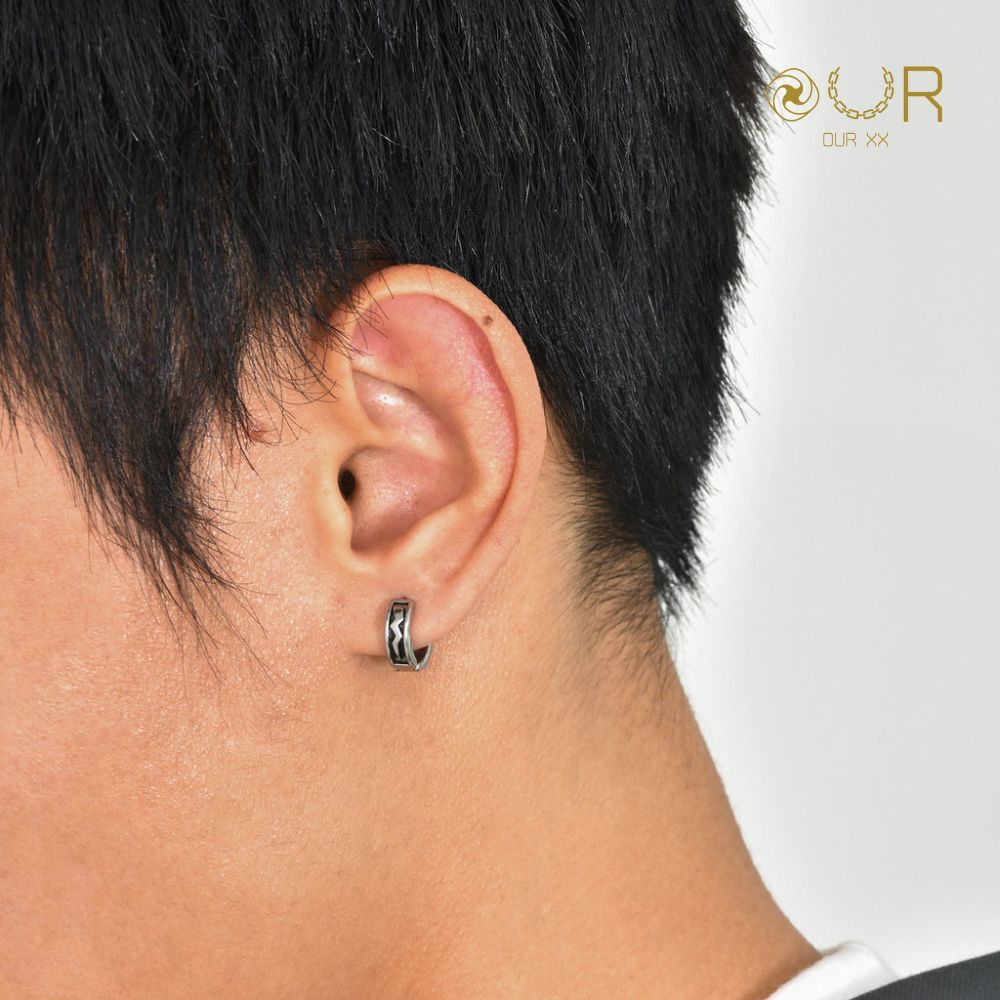 Our XX Pikachu ต่างหูห่วงเจาะลายสายฟ้า Hoop earrings วัสดุไทเทเนียมเกรดเครื่องมือแพทย์ (P164)