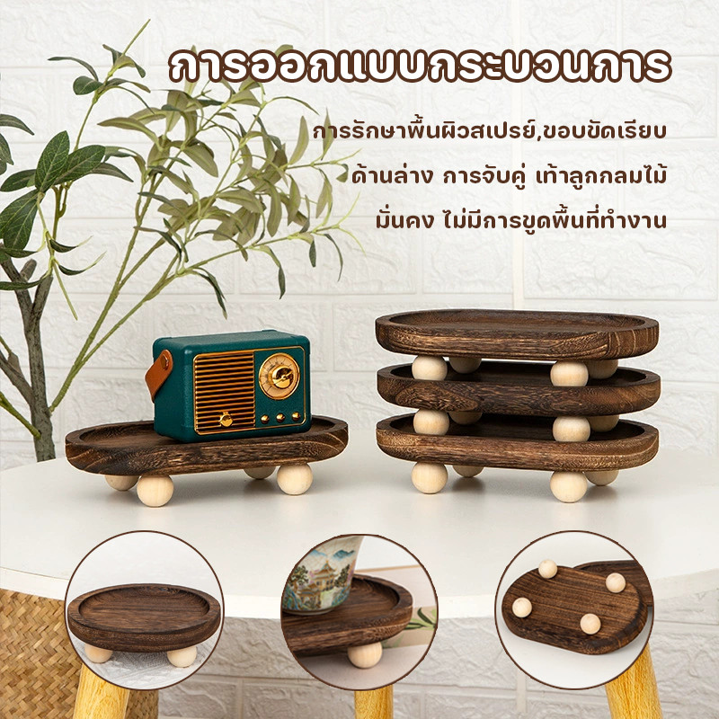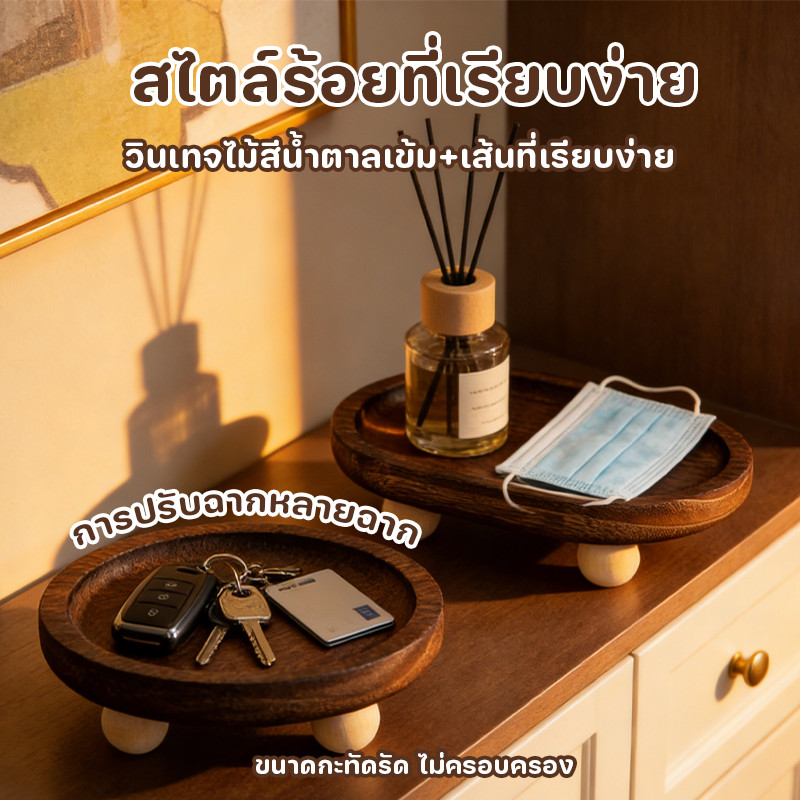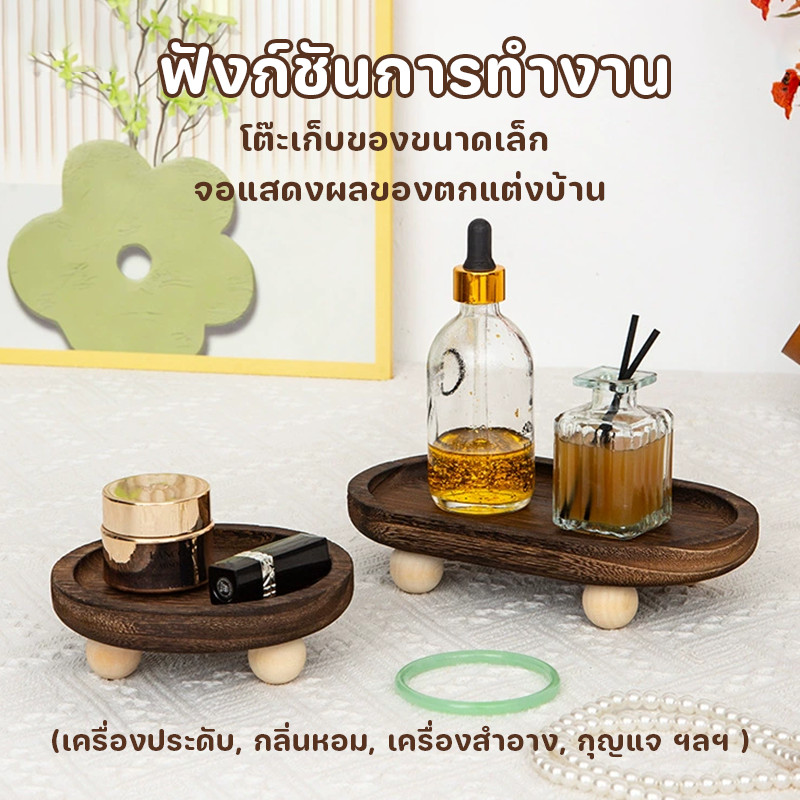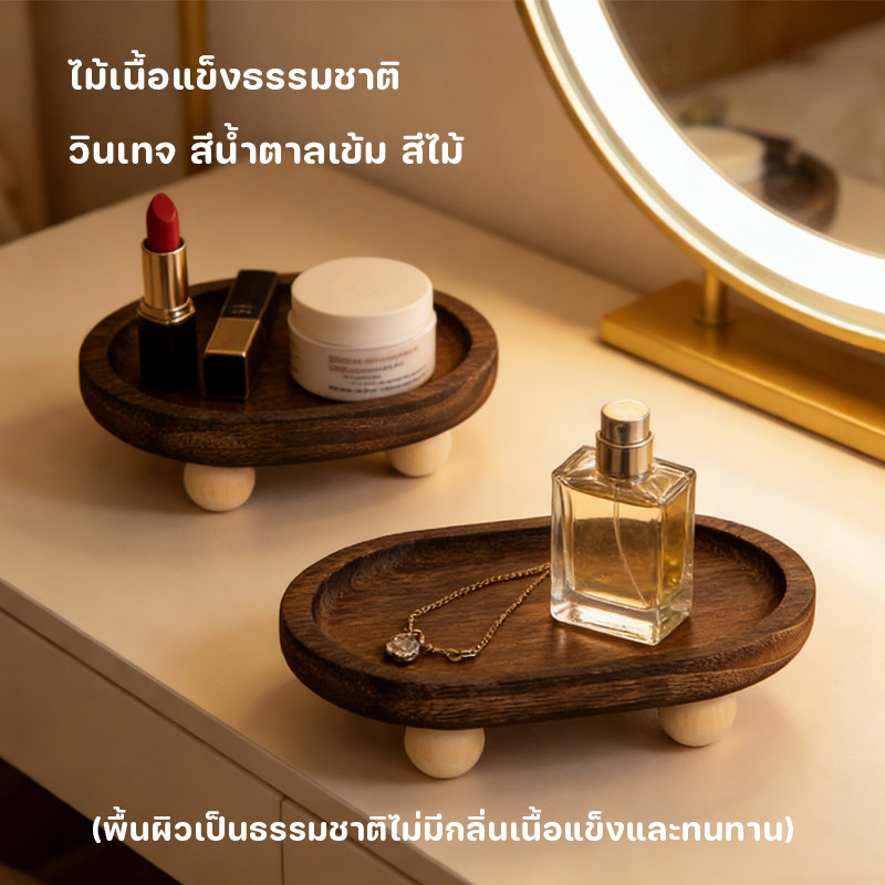 COD ถาดเครื่องประดับน้ําหอม วงกลม/รูปไข่ วินเทจเรียบง่าย ไม้จัดเก็บถาดแบบธรรมชาติ ฮยอนกวน ตกแต่งบ้าน