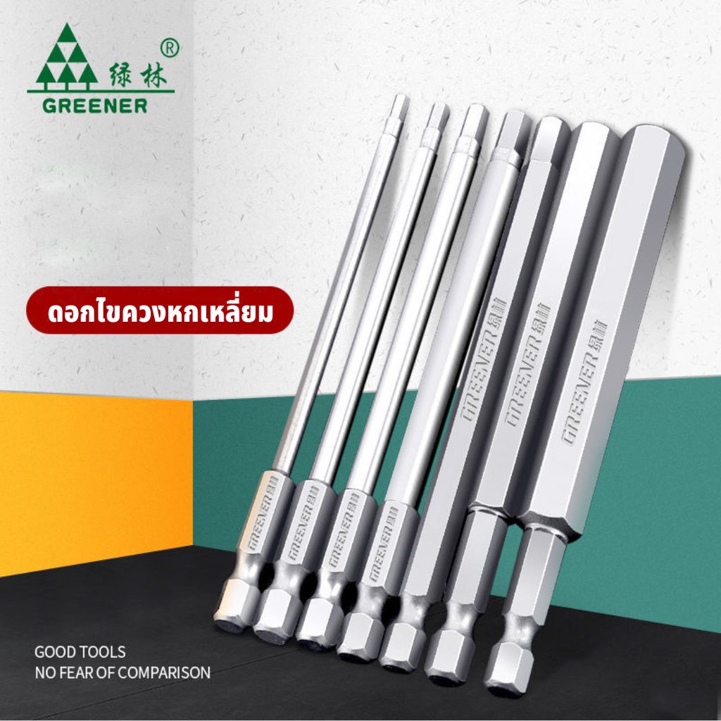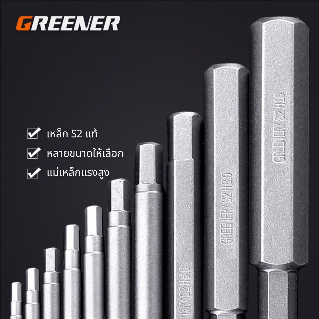 GREENER ดอกไขควงหกเหลี่ยม ไขควงหกเหลี่ยม ดอกไขควงแม่เหล็ก ดอกไขควงแม่เหล็ก S2 แท้ ยาวพิเศษ
