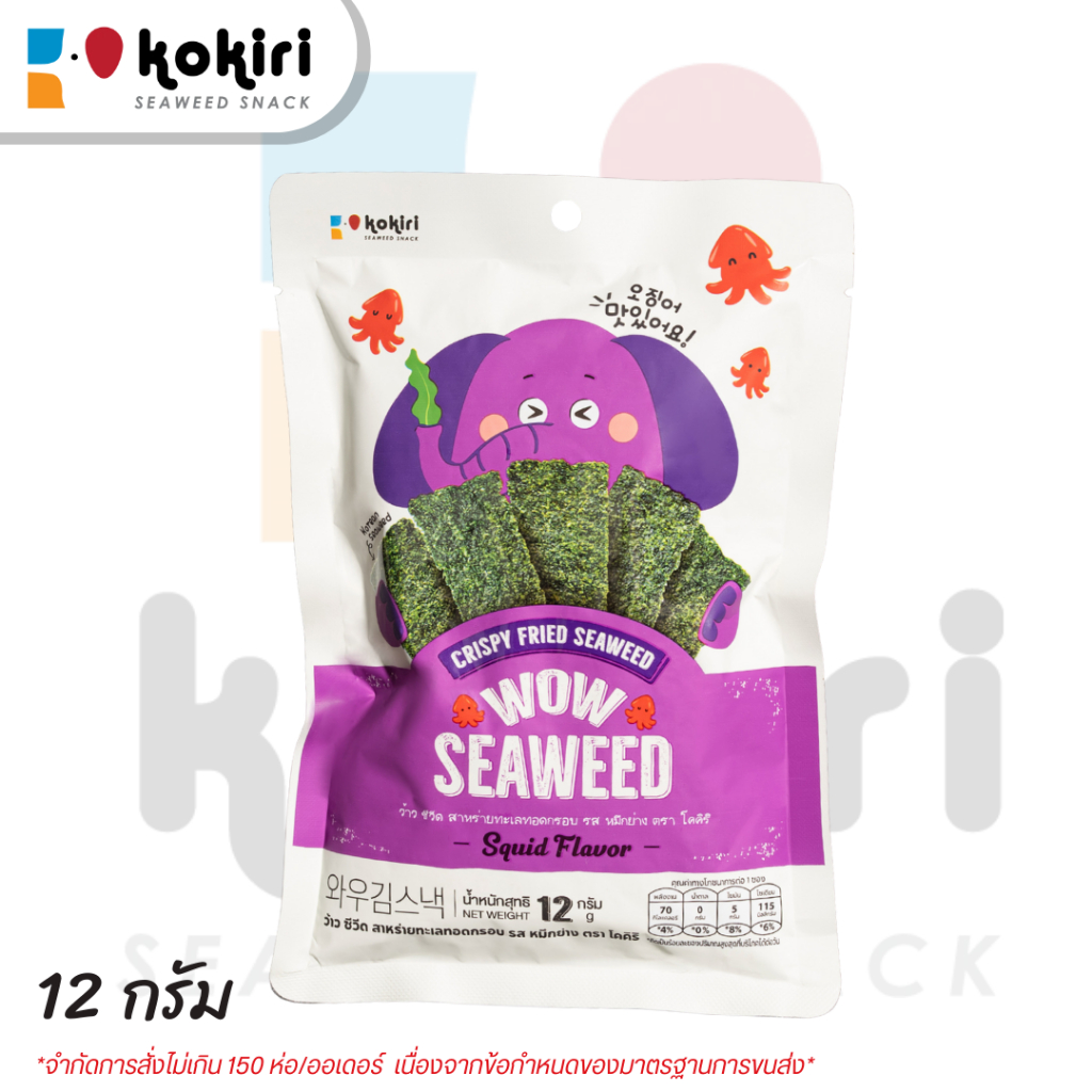 สาหร่ายทะเลทอดกรอบ ว้าว ซีวีด wow seaweed 12 กรัม ตราโคคิริ (แบบแพ็ค)