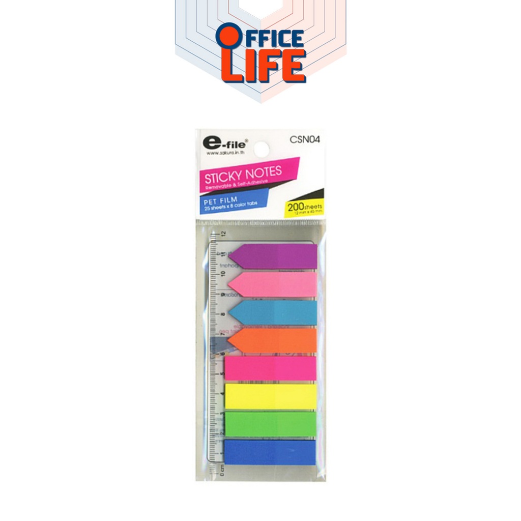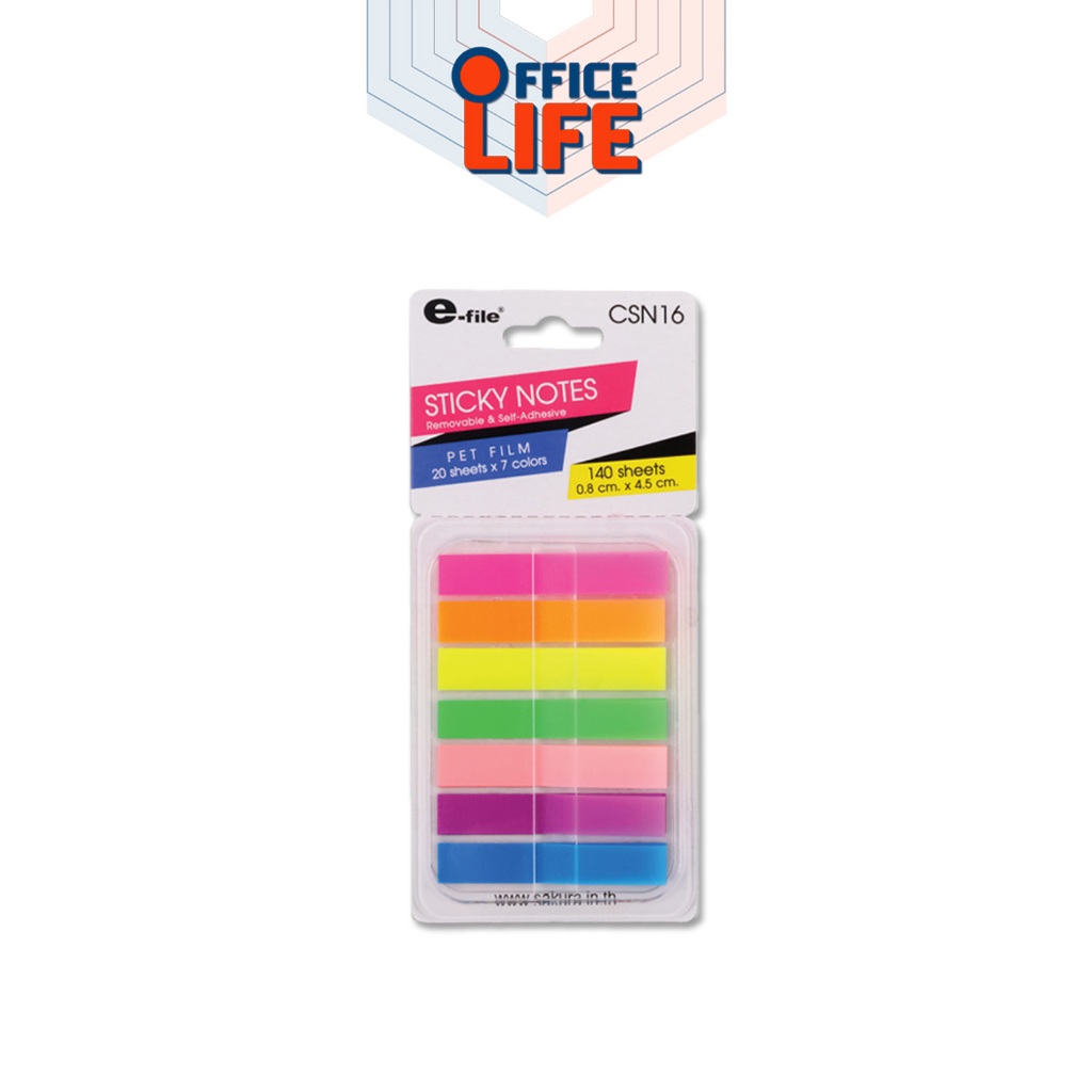 E-filee-file (อี-ไฟล์) อินเด็กซ์โน๊ต Sticky Notes ฟิล์มอินเด็กซ์ ดัชนีคั่นหน้า รุ่น CSN03/CSN04/CSN05/CSN16 (จำนวน 1 แพ็
