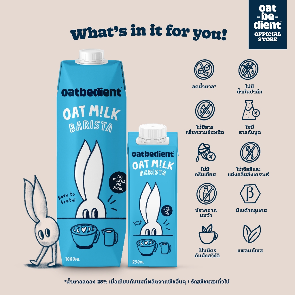 [3 กล่อง] นมโอ๊ต OATBEDIENT Oat Milk Barista 1L x3 โอทบีเดียนท์ สูตรบาริสต้า ขนาด 1 ลิตร