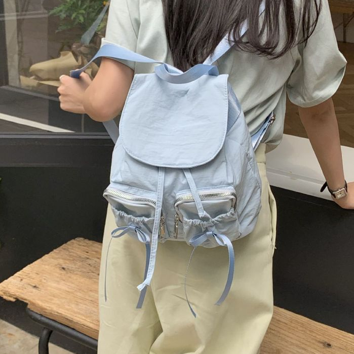 กระเป๋าเป้ผู้หญิงสะพายหลัง มี 3 สีใสสัมภาระหนักดีไซส์น่ารักสดใสเเต่งโบว์ด้านหน้า มีกระเป๋าช่องด้านหน้า 2 ช่องจ