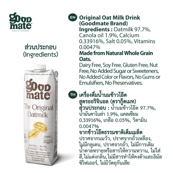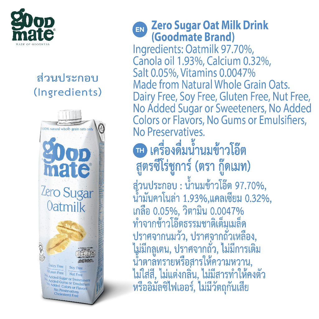 Goodmate นมโอ๊ต สูตรซีโร่ชูก้าร์ขนาด 1000 มล. (3 กล่อง) + สูตรสูตรออริจินอลขนาด 1000 มล. (3 กล่อง) - (1 ลัง: 6 กล่อง)