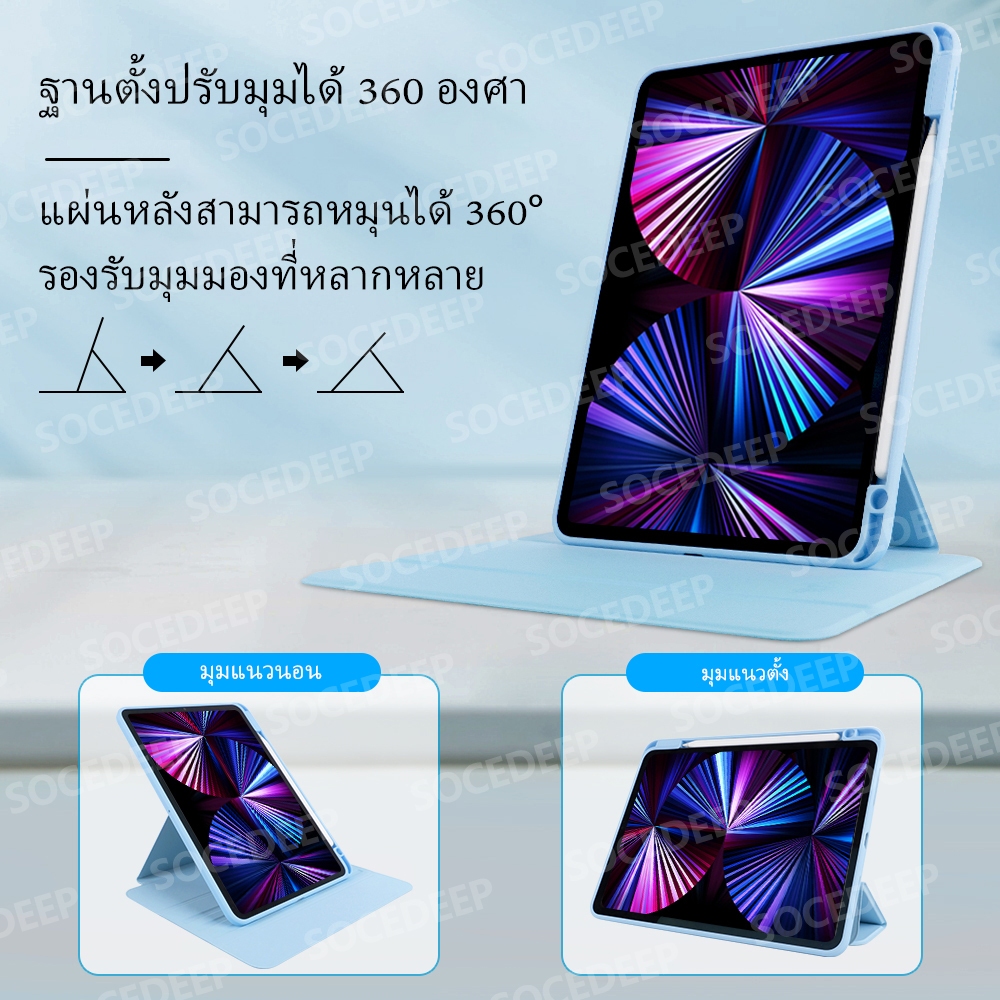 Socedeep สําหรับ RedmiPad 2 Pro 12.1 Xiaomi Pad Mini 8.8 RedmiPad 2 Xiaomi MiPad 7 Pro 11 2025 RedmiPad SE 8.7 4G 2024 RedmiPad Pro POCO Pad 12.1 Redmi Pad SE 11 Xiaomi MiPad 5 6 6S Pro 12.4 ปลอก 360° หมุนหลังอะคริลิคพร้อมที่ใส่ดินสอ ฝาครอบแท็บเล็ต