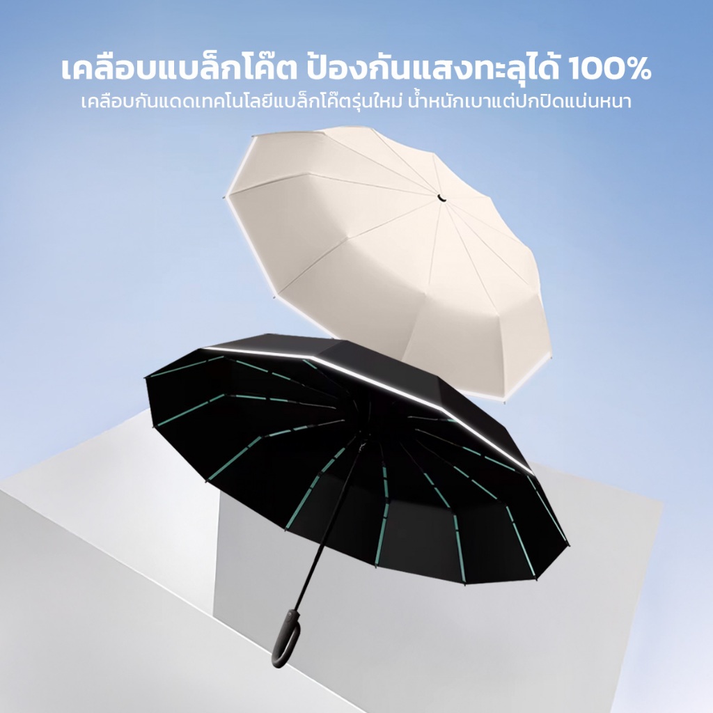 ร่มพับ กดเปิด-ปิดอัตโนมัติ เคลือบสารป้องกันแสงแดด UPF 50+ กันแสงUV 99.99% ด้ามจับแบบห่วงคล้อง