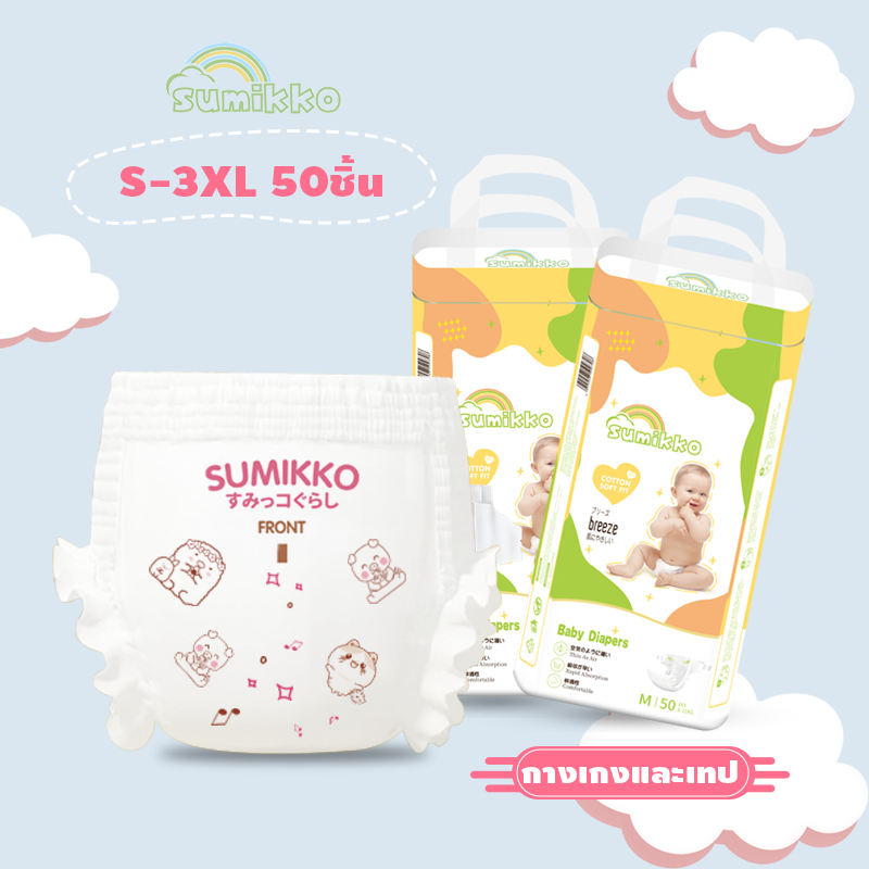 Sumikko 50ชิ้น ผ้าอ้อม กางเกง เทป เด็ก BABY DIAPER PANTS S/M/L/XL/XXL/XXXL นุ่ม บางเบา