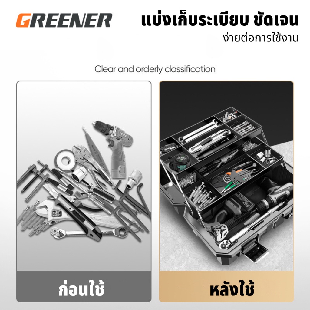 GREENER กล่องเครื่องมือช่าง กล่องเครื่องมือ 3 ชั้น วัสดุพลาสติก PP/ABS แข็งแรง ทนทาน เหนียว