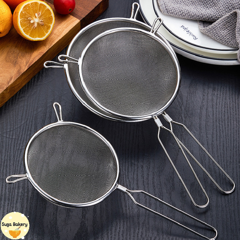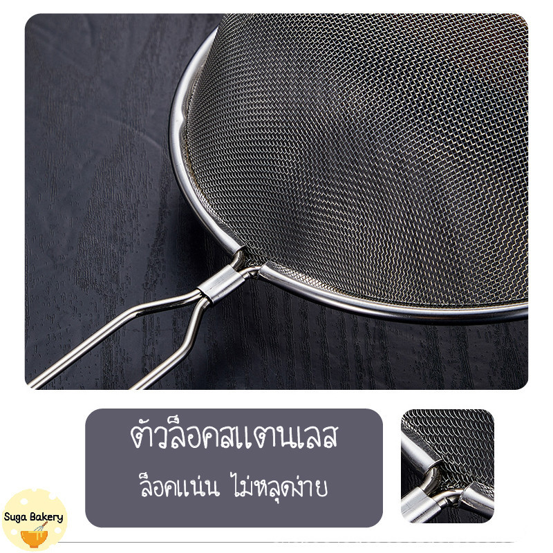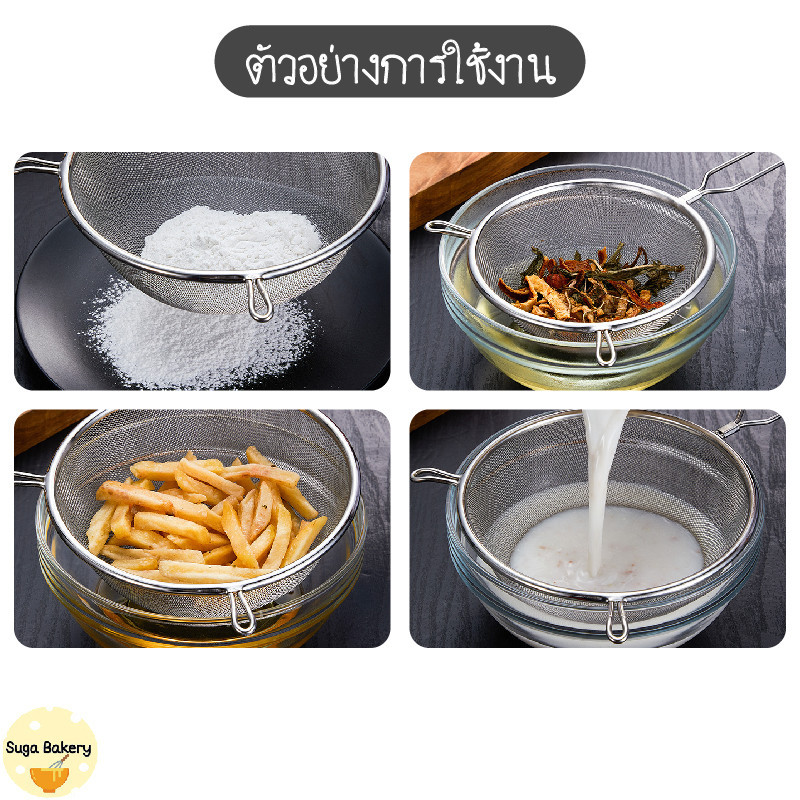 SUGA พร้อมส่ง กระชอนสแตนเลส ที่ร่อนแป้ง ตะแกรงกรองแป้ง กระชอนตักอาหาร มี 8 ขนาด วัสดุสแตนเลสแท้ กรองละเอียด COD MIP233