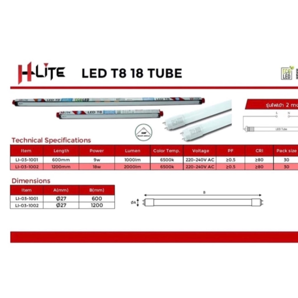 Hlite หลอดนีออนLEDรุ่นECO-DOUBLE-ENDED9W. (ขายยกลัง)แพ็คโฟม
