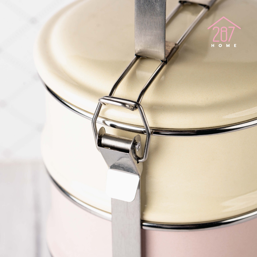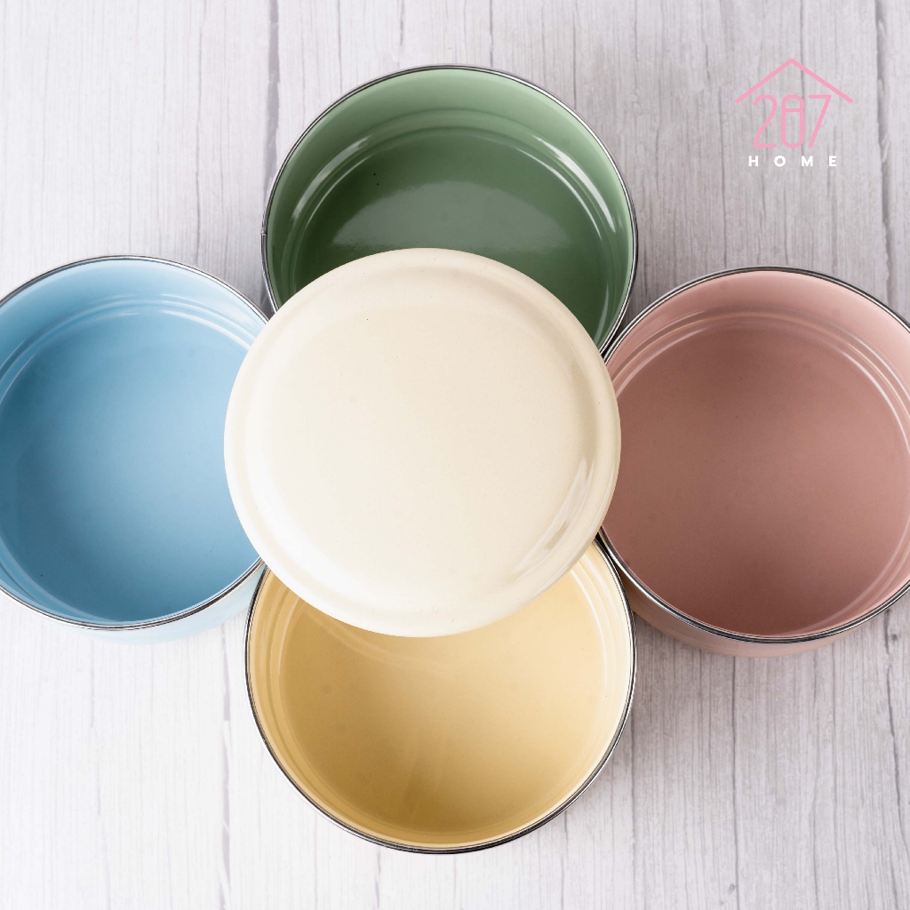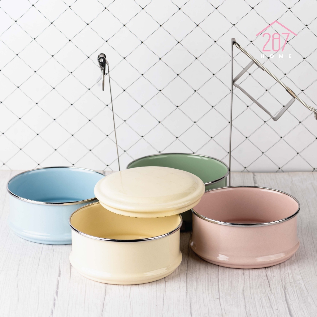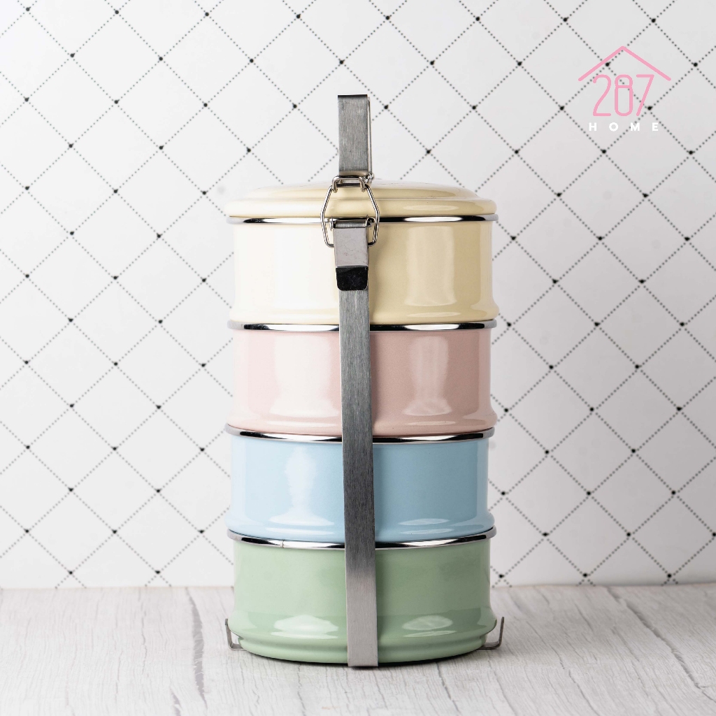 ปิ่นโต ปิ่นโตพาสเทล ปิ่นโตเคลือบ ทรงตรง ขาสแตนเลส 14cm x 4ชั้น (1เถามี4สี)