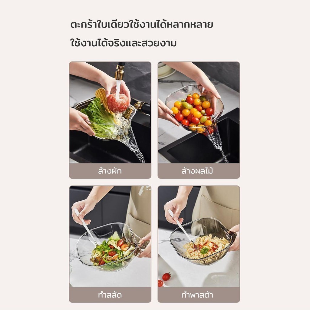 ตะกร้าล้างผักผลไม้ ระบายน้ําได้ อเนกประสงค์ สําหรับล้างจาน สลัด ข้าว ผลไม้ ในครัวเรือน ตะกร้าพลาสติก