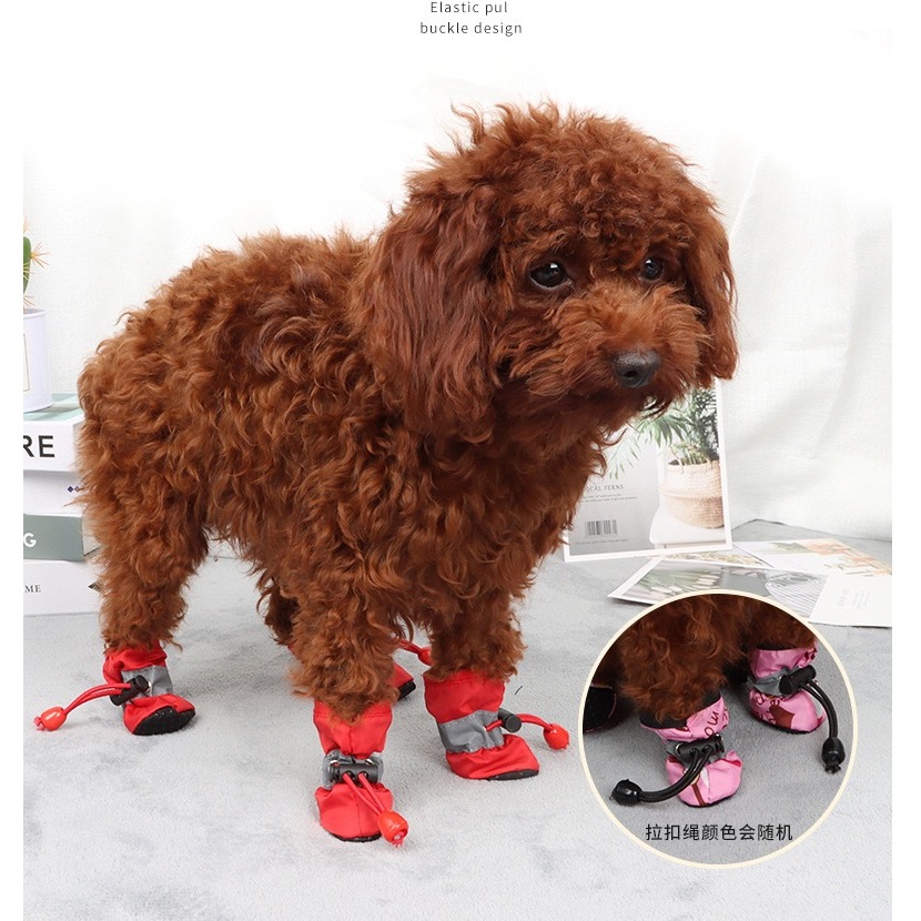 AL-866 รองเท้าบูทสัตว์เลี้ยง สุนัข หมา แมส กันฝน กันน้ํา กันลื่น สามารถปรับได้ จํานวน 4 ชิ้น พร้อมส่ง🐶🐱