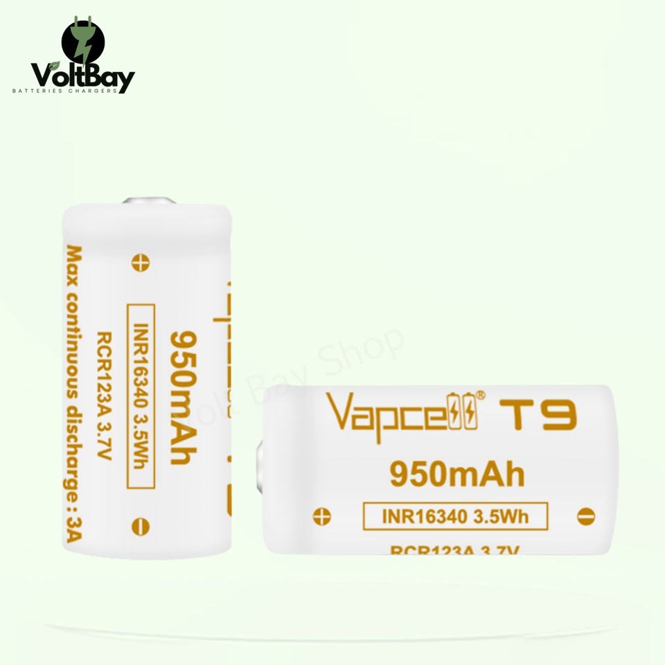 Vapcell ถ่านชาร์จ T9 (หัวนูน) 16340 3.7V 950mAh จ่ายกระแสสูงสุด 3A (CR123A)