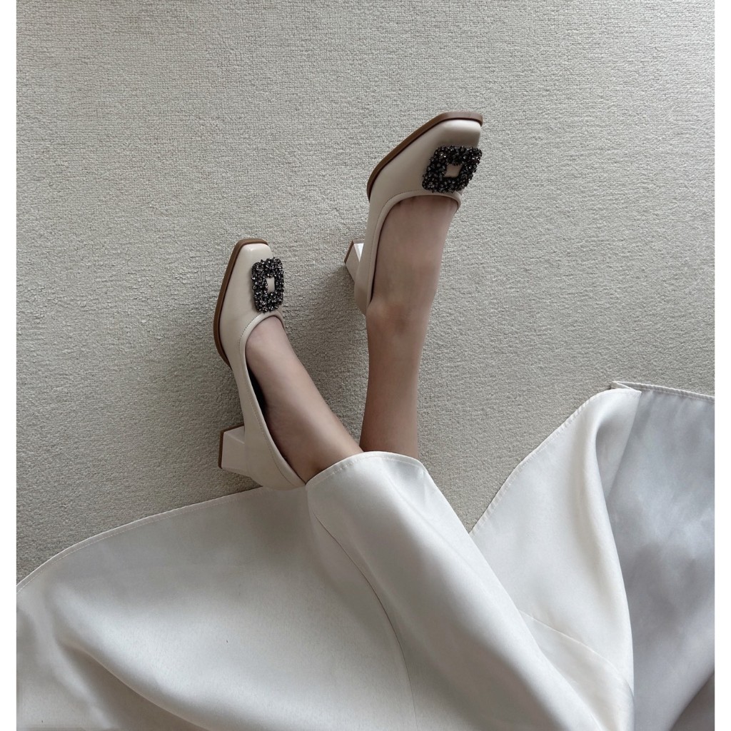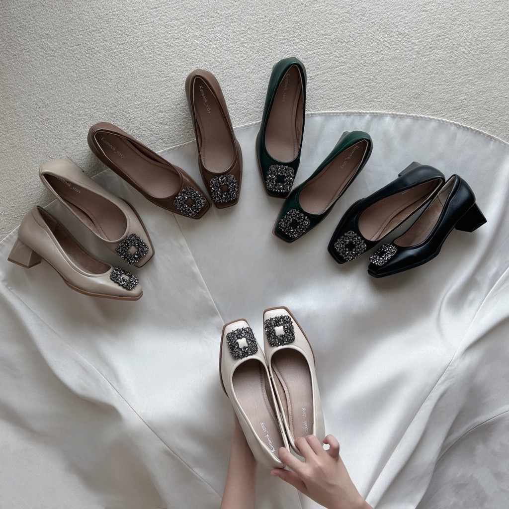 รองเท้าคัทชู ปลายตัดแต่งอะไหล่Block Heels ส้นสูง1.5นิ้ว รองเท้าkaimooksissy ks251107