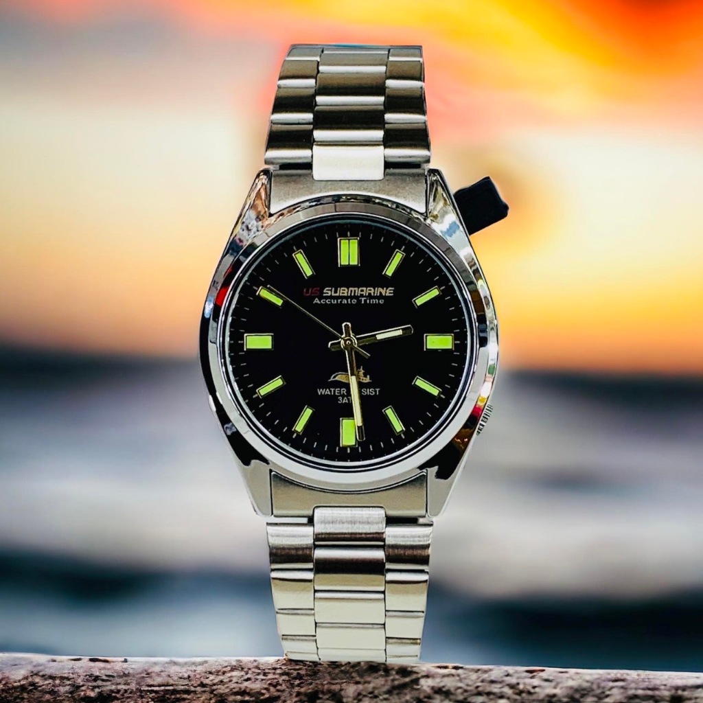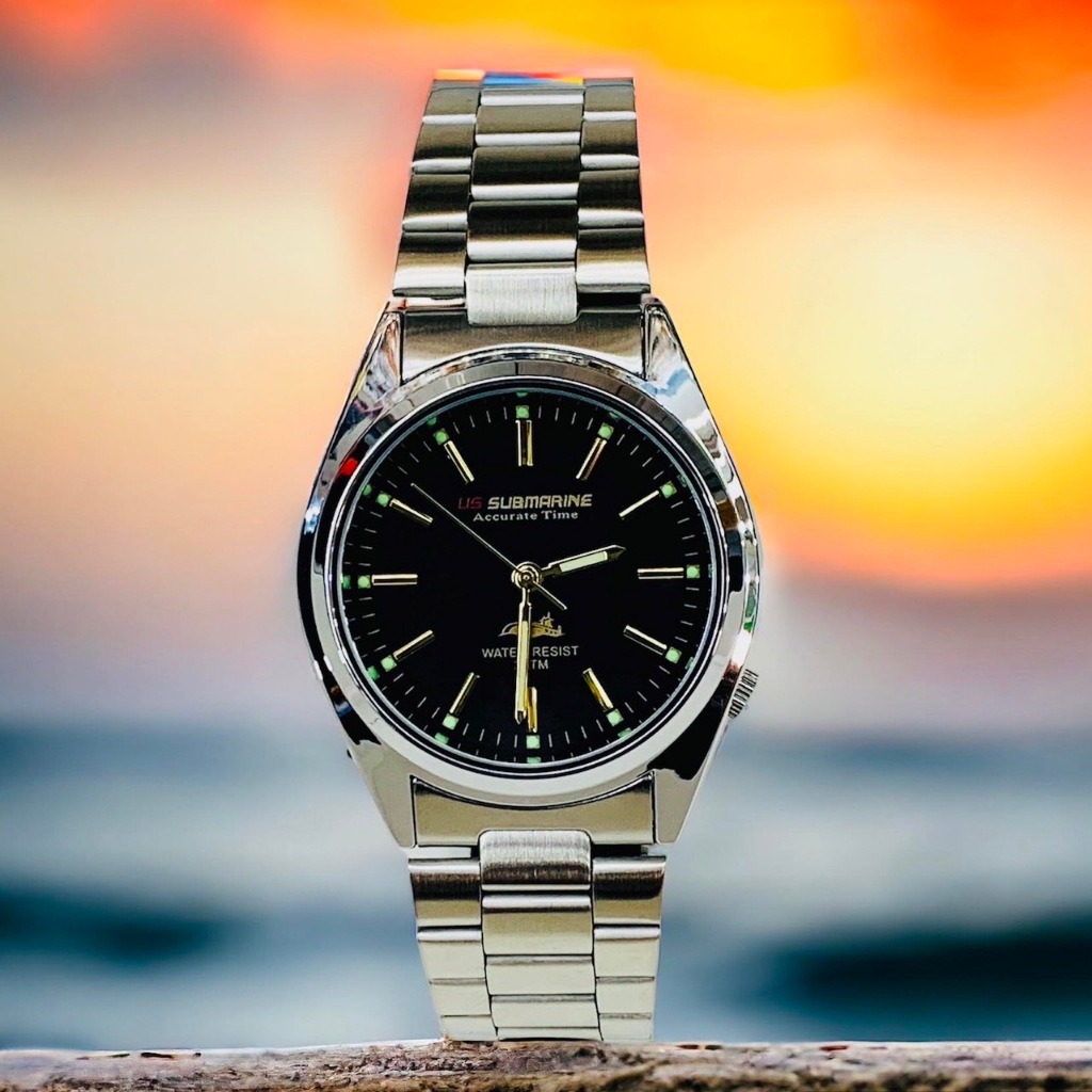 นาฬิกาผู้ชาย US submarine รุ่น J-035M นาฬิกาข้อมือผู้ชายสายเหล็กกันน้ำ 100 % เข็มเรืองแสงระบบควอทต์